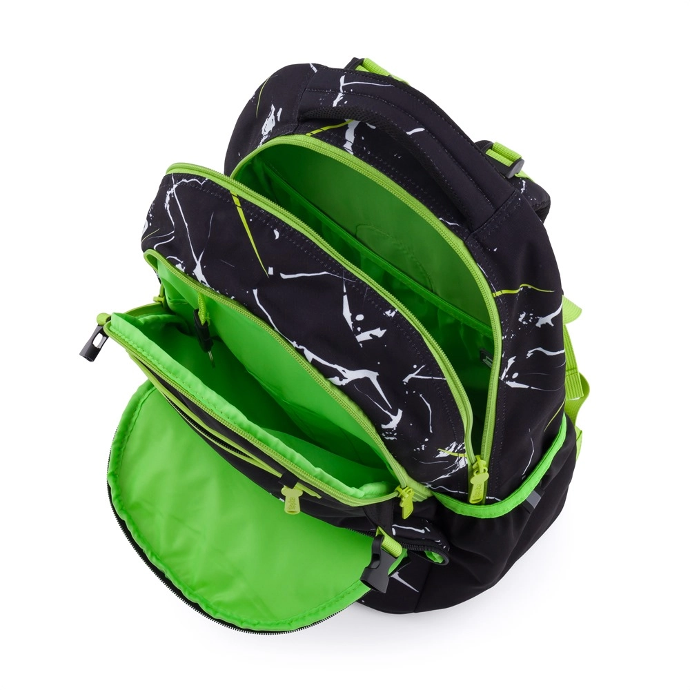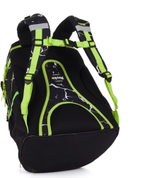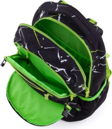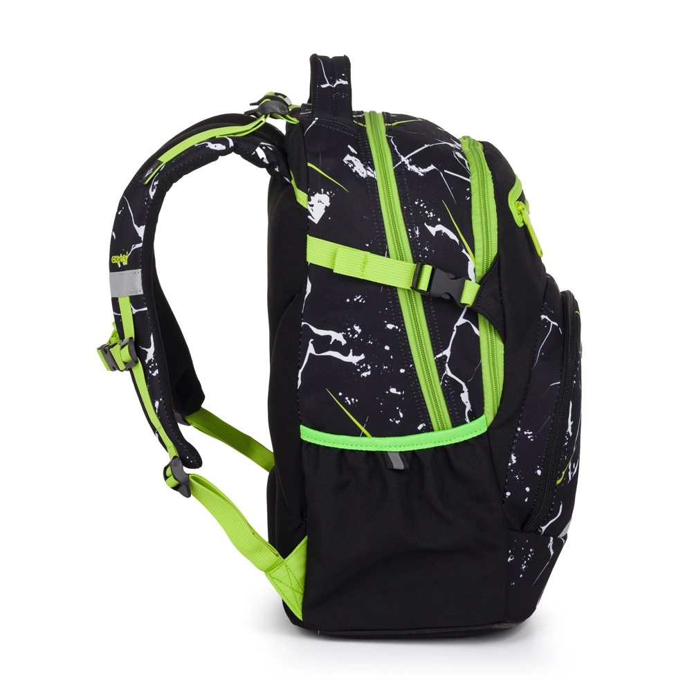 Вътрешността включва 2 просторни отделения за учебници и тетрадки, еластични странични джобове за бутилка с вода и преден джоб за дребни вещи или закуска. Рефлекторните елементи повишават видимостта и безопасността при ходене до и от училище. С обем 28 l, тегло 960 g и товароносимост 8 kg това е надежден помощник за всеки ден.