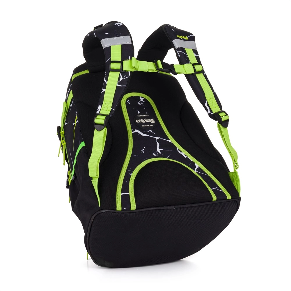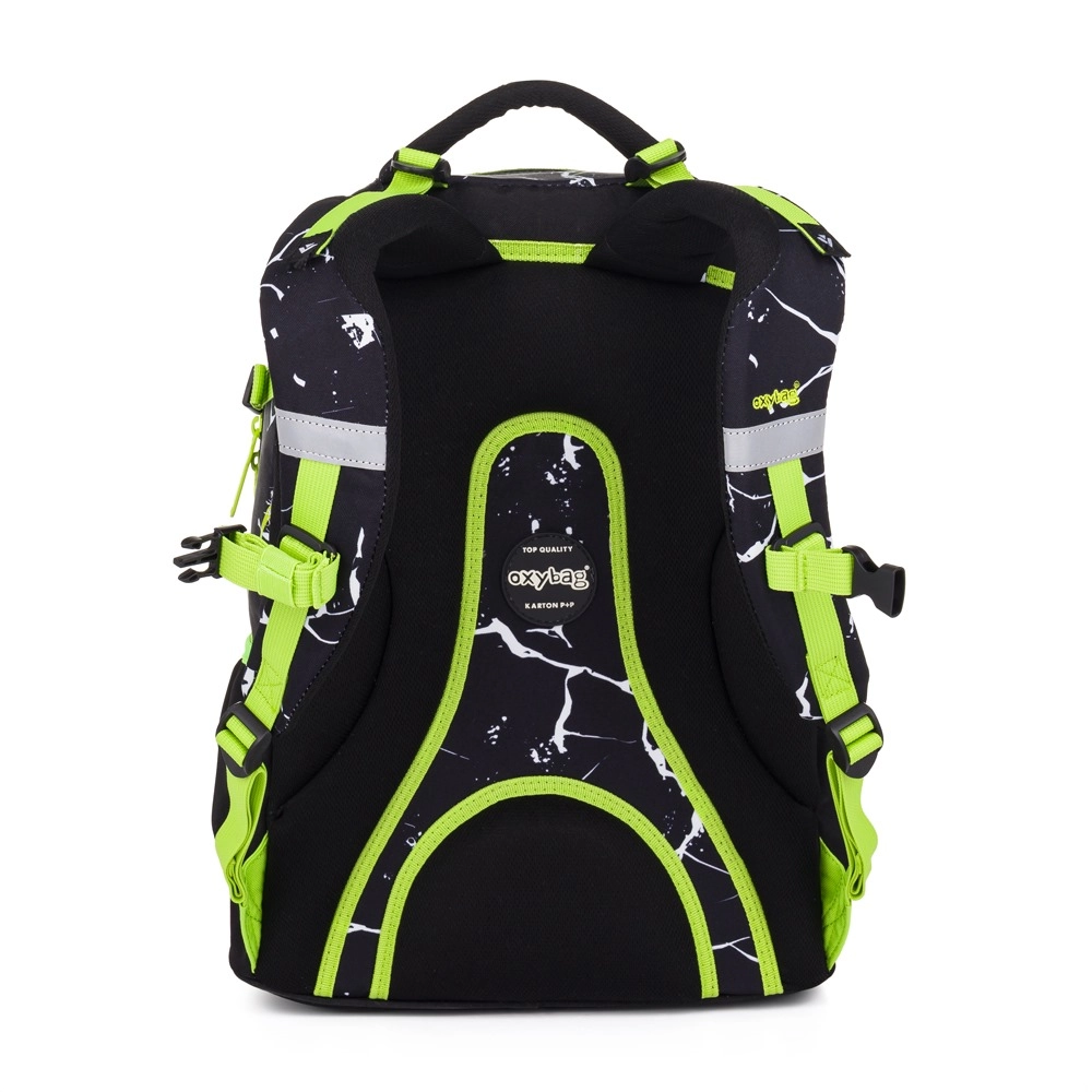 Ученическата раница Oxy Ombre Electric е създадена за ученици с ръст около 136 см и нагоре. Благодарение на анатомично оформения гръбен панел (43 см), подплатените раменни презрамки и регулируемия гръден колан предоставя отлична опора на гърба и комфорт през целия учебен ден. Здравото дъно поддържа раницата стабилна и предотвратява преобръщане.