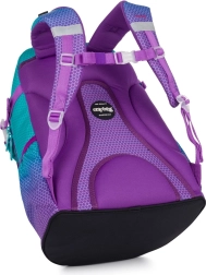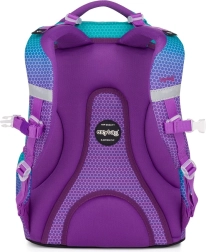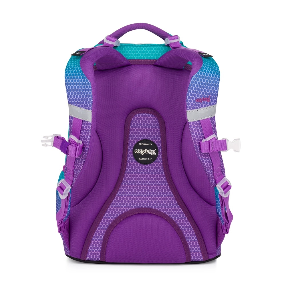 Ученическата раница Oxy Ombre Blue Pink впечатлява с модерен омбре дизайн в комбинация от тюркоазено и лилаво с хексагонален мотив. Благодарение на анатомично оформения гръбен панел и подплатените, регулируеми презрамки предлага комфорт през целия ден дори при пълно натоварване. Здравото дъно позволява стабилно поставяне и защитава съдържанието.
