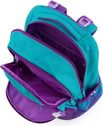 Умното разпределение с две основни отделения лесно побира учебници, тетрадки и несесер. В страничните джобове с ластик се побира бутилка за вода, а предният джоб е идеален за малка закуска или дребни вещи. Рефлекторните елементи повишават видимостта и безопасността на децата по пътя към училище. Раницата е препоръчителна за деца с ръст от 136 см.