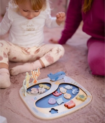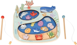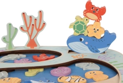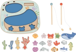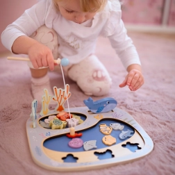 Риболовната играчка Tooky Toy предлага не само традиционен риболов, но и разнообразни креативни дейности за деца. Потеглете на приключение по улавяне на скритите създания, които могат да бъдат скрити в един от двата скалисти басейна на дъската. Играта развива уменията на децата като фина моторика и координация между ръце и очи. Благодарение на масивната дървена конструкция със сертификация FSC и нетоксичните бои е безопасна за деца от три години.