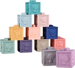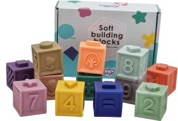Благодарение на различните форми и текстури кубчетата подпомагат развитието на моторните и мануалните умения на детето.