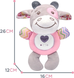 Интерактивното плюшено теленце успокоява и приспива вашето дете. Играчката може да пуска приспивни песни и да проектира цветни светлинки, които ще забавляват малкия откривател. Този мек плюшен приятел ще бъде спътник на вашето дете още от най-ранна възраст.