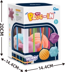 Цветните еластични ленти позволяват на децата лесно да промушват формите навътре и навън, като така тренират захвата, координацията и търпението.