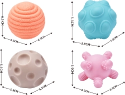 Четири меки елемента с различна текстура и цвят стимулират осезанието, подобряват фината моторика и подпомагат ученето на цветове и форми.