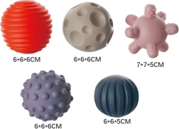 Благодарение на мекия, безопасен материал кубчетата са подходящи и като гризалка при никнене на зъбки. Комплектът съдържа 6 броя в картонена кутия с прозорче – страхотна идея за подарък за бебета от 6 месеца. Играта с кубчетата развива фината моторика, осезанието, концентрацията и подпомага логическото мислене и сътрудничеството.