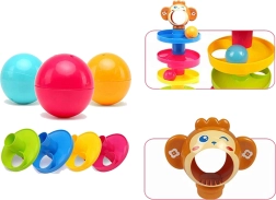 Тази спираловидна кула е идеалният начин да забавлявате вашето дете от шестмесечна възраст. С цветни топчета, които се хващат лесно, и благодарение на техните дрънчащи звуци, това е играчка, която подпомага сетивната стимулация. Комплектът включва 6 лесни за сглобяване части, които детето може да свързва по желание и така да развива своята моторика.