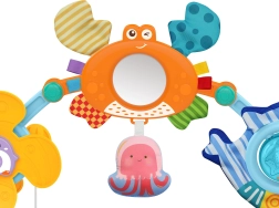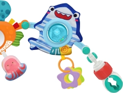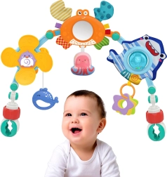 Играчката-арка може лесно да се прикрепи към количка, столче за кола или кошара за максимална гъвкавост.
