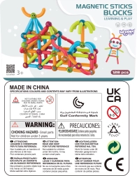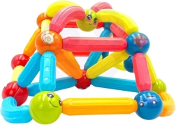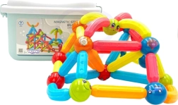 Този цветен магнитен конструктор WOOPIE е идеален за деца от 3 години. Елементите са достатъчно големи, здрави и заоблени, за да се държат удобно от малки ръчички. Металните топчета и магнитните пръчици в различни дължини и форми позволяват създаване на въображаеми модели – от прости форми до по-сложни 3D конструкции.