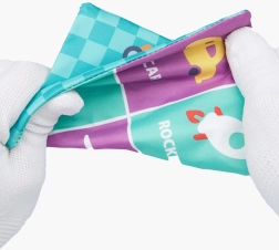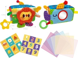 Съдържа различни текстури и шарки, които помагат на децата да откриват свят, пълен с цветове и мотиви.