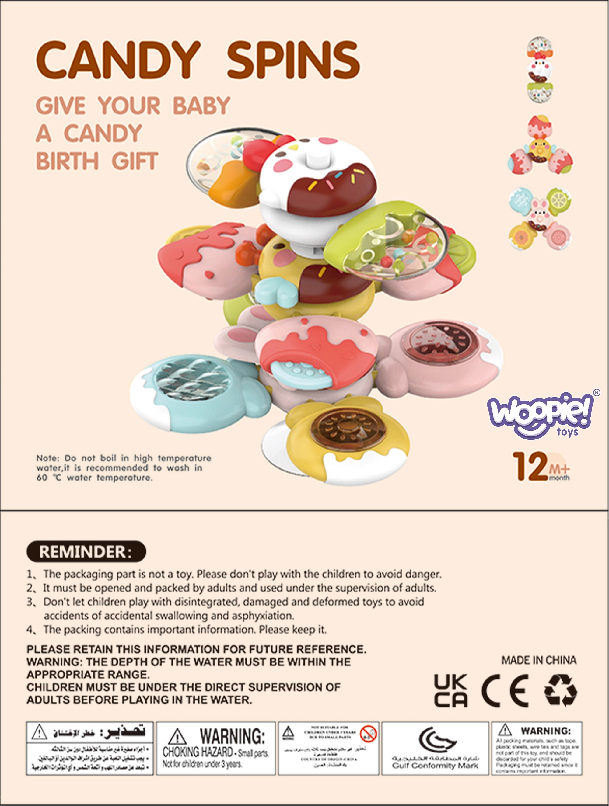 Сензорните спинъри WOOPIE ще впечатлят всяко дете. Този комплект съдържа 3 различни спинъра: пчела, пиленце и заек, които децата могат благодарение на гумени вендузи да закрепват върху гладки повърхности и да ги вземат навсякъде със себе си.