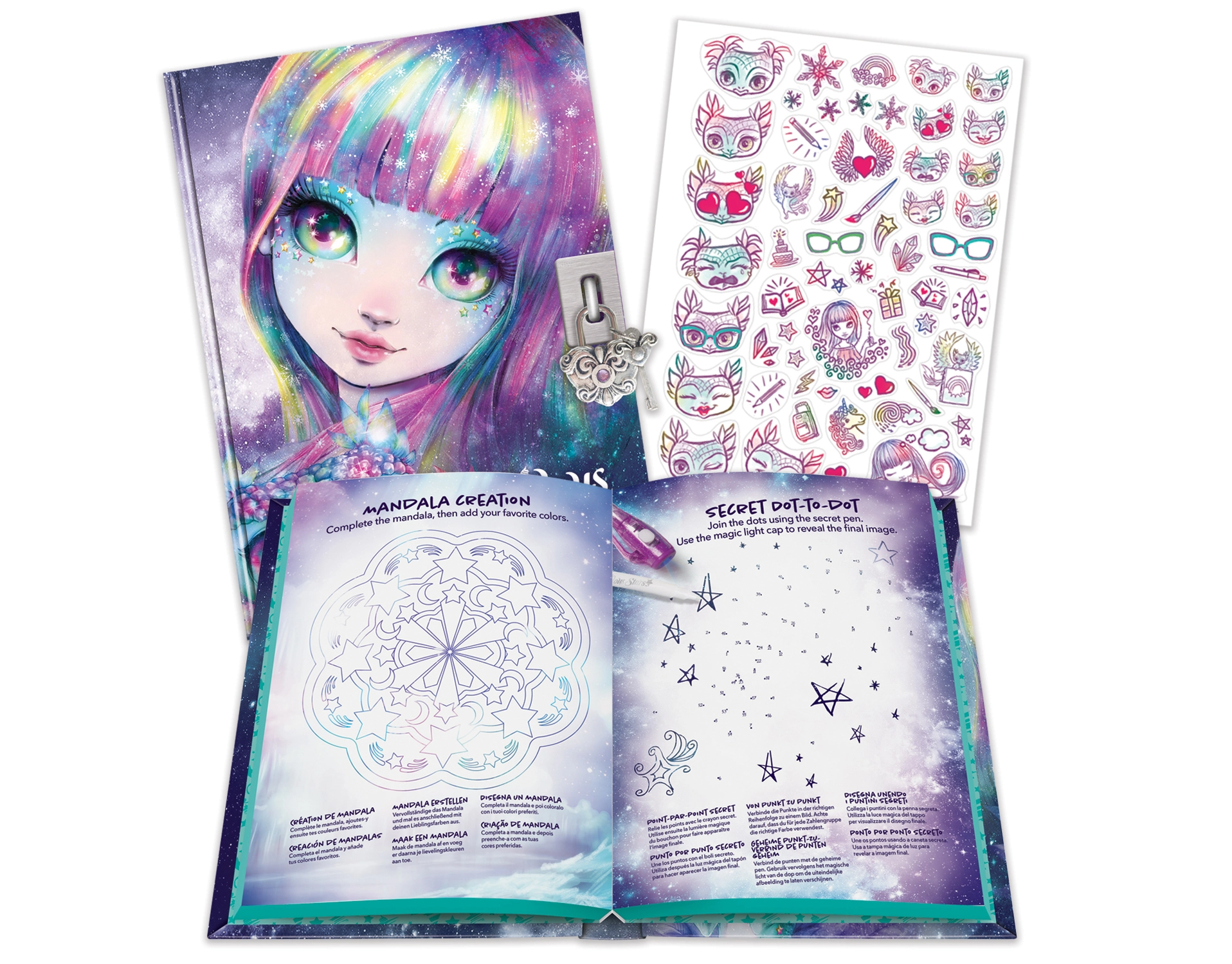 Влезте във впечатляващия свят на Nebulous Star с това тайно тефтерче. Този красиво илюстриран дневник ви позволява да съхраните всичките си мисли, желания и малки тайни в безопасност. В комплекта има вълшебна химикалка, която придава мистичен нюанс на вашите записки.