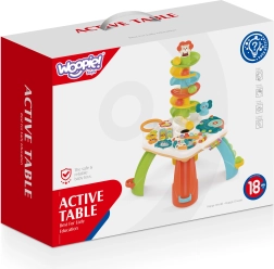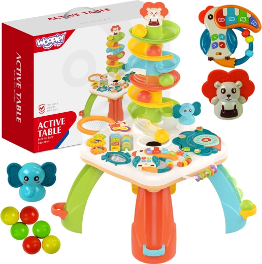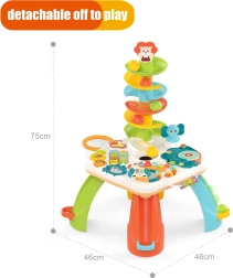 Интерактивната масичка за деца комбинира образователен панел със сензорни елементи и пързалка за топчета. Цветният и забавен дизайн привлича както момчета, така и момичета. Детският дизайн на масата съчетава игра и учене, което помага за развитие на моторните и мануалните умения, слуха и разбирането за света. Това е идеалната играчка за стимулиране развитието на детето.