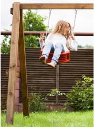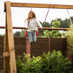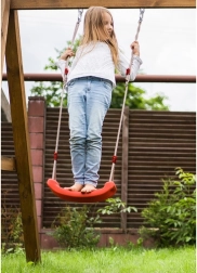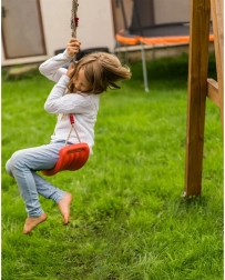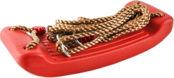 Червена пластмасова люлка с ергономично оформена седалка предлага на децата забавление и развитие на моториката както в градината, така и у дома. Благодарение на здравите въжета с дължина, регулируема в диапазона 105–175 cm, лесно настройвате височината на окачване според различните места – от детската стая до терасата или перголата.