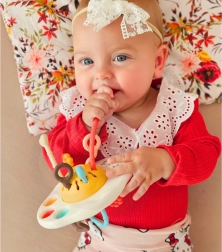 Три меки бутона и един по-стабилен плъзгащ се бутон насърчават натискането и плъзгането, тренират пръстите и фината моторика.