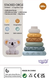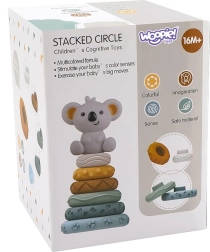 Очарователната кула за подреждане от марката WOOPIE е образователна и безопасна играчка за най-малките. Изработена от мек, гъвкав и нетоксичен материал, служи и като гризалка. Шест пръстена с различни размери и горна фигурка коала подпомагат сензорното възприятие, координацията око-ръка и фината моторика.