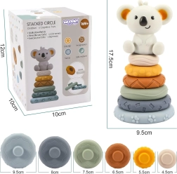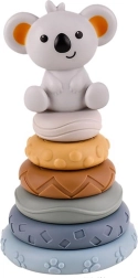 Децата могат да подреждат по въображение или според размера на пръстените, като така развиват разпознаване на форми и размери, концентрация и търпение. Нежните пастелни цветове и меката фигурка коала превръщат играчката в привлекателен спътник за всеки ден.