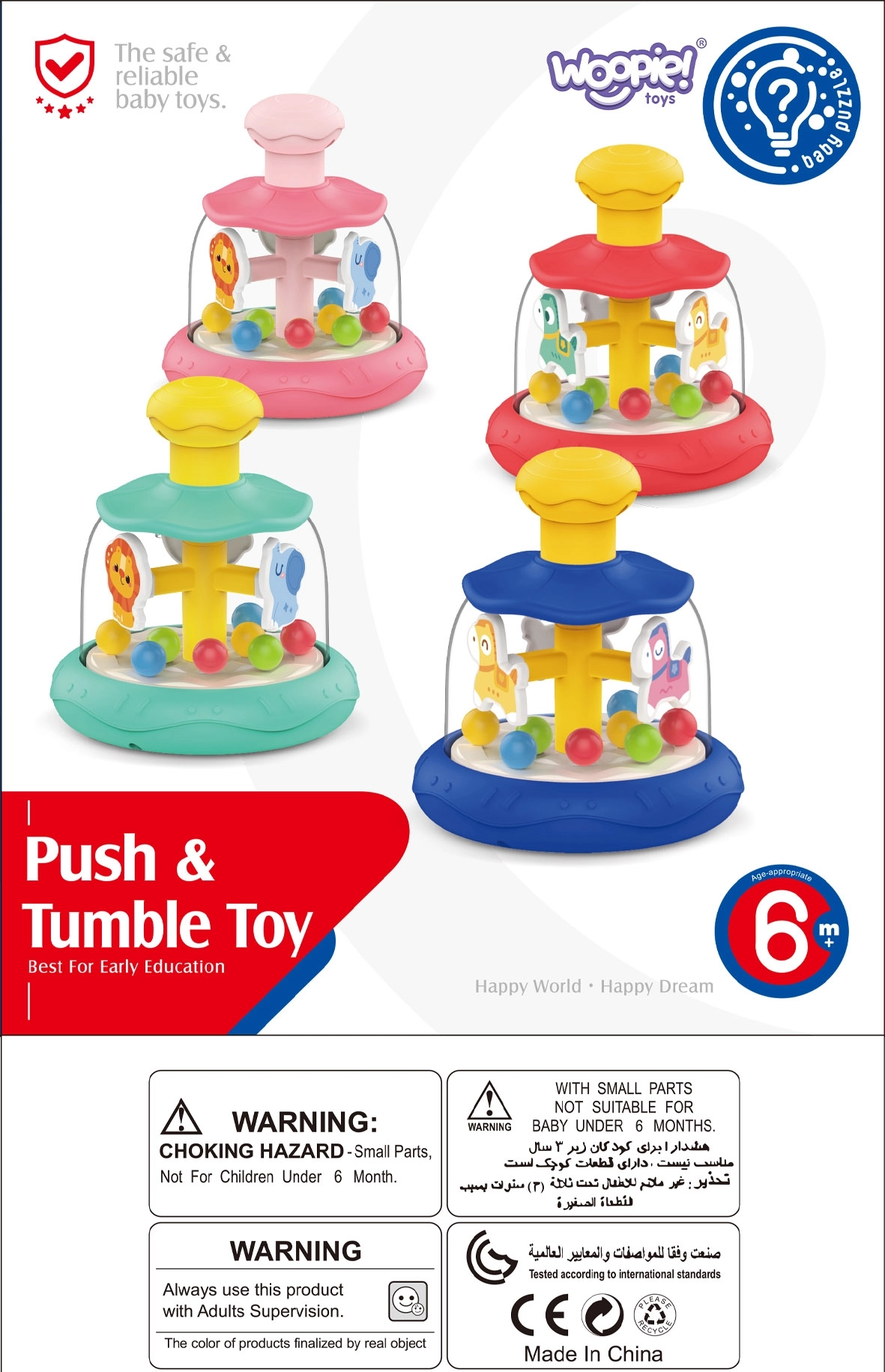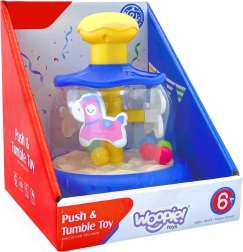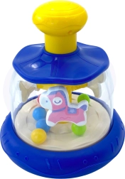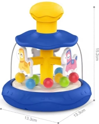 Откривайте света чрез игра с иновативната играчка „Забавна въртележка“! Тя е проектирана за най-малките откриватели и помага за развиване на тяхната моторика, сетивност и когнитивни умения. Достатъчно е детето да натисне жълтата горна част на въртележката и кончето с топчетата ще започнат да се движат.