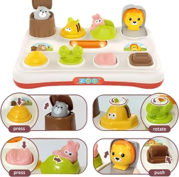 Открийте забавлението и ученето в едно с интерактивната играчка WOOPIE – изскачащи животни ZOO. При активиране чрез превключвател, въртящ контролер или бутони животинката се показва и изненадва детето. Играчката е издръжлива, висококачествено изработена и отлично подпомага фината моторика и разбирането на причинно-следствените връзки.