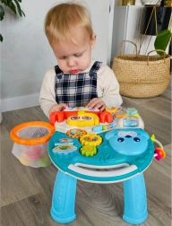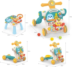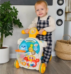 Тази играчка е истинска съкровищница от изненади, които детето може самостоятелно да открива. Комбинацията от няколко функции в една играчка: проходилка, тротинетка, возило и образователна масичка гарантира, че играчката няма да омръзне.