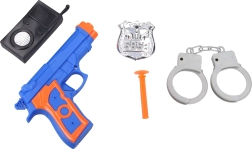 В комплекта има пистолет с вендузени стрели за безопасна стрелба, значка за автентичен полицейски вид, белезници за „задържане“ на крадците и уоки-токи за координация на действията. Комплектът е подходящ за деца от 3 години и подпомага развитието на въображението и ролева игра.