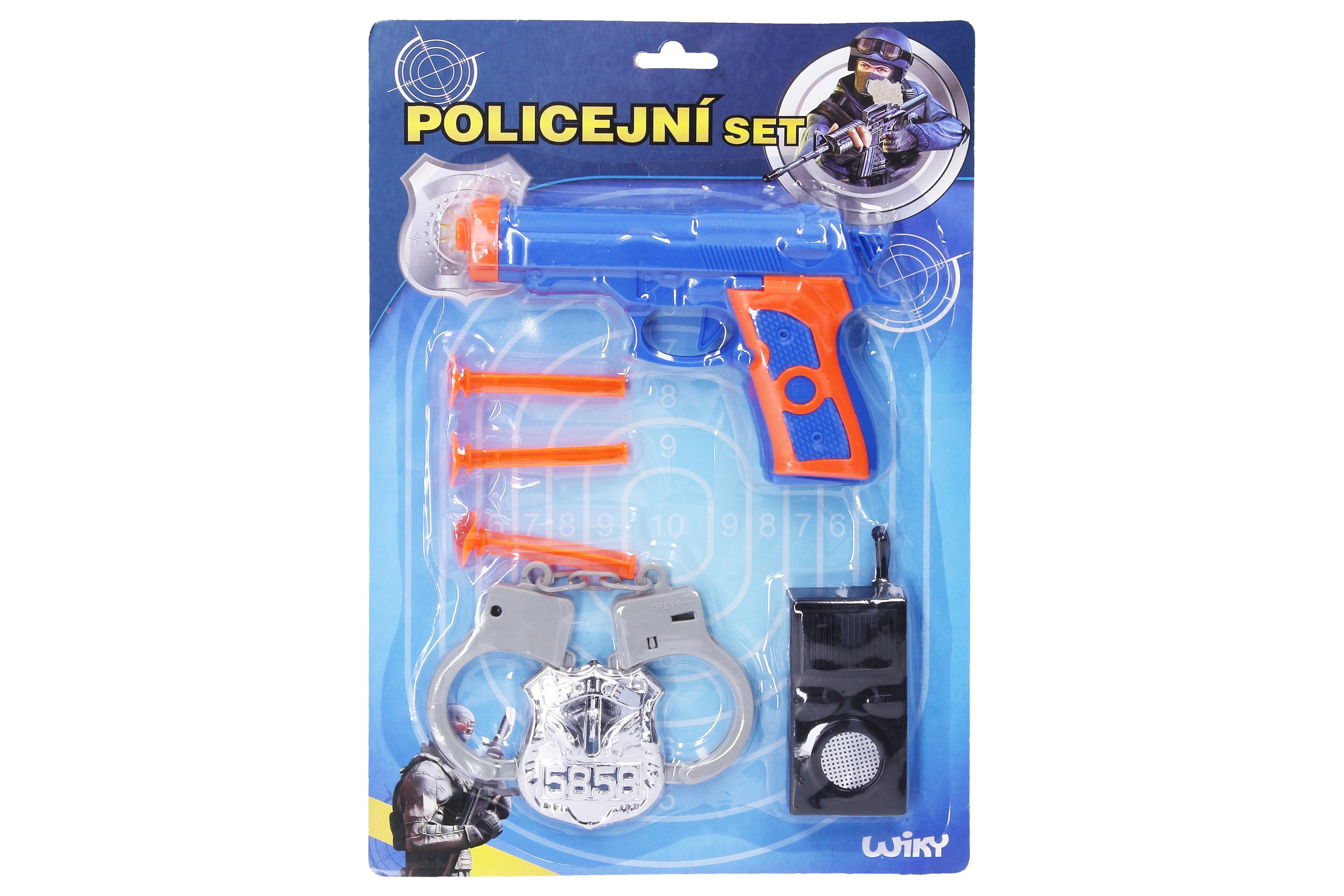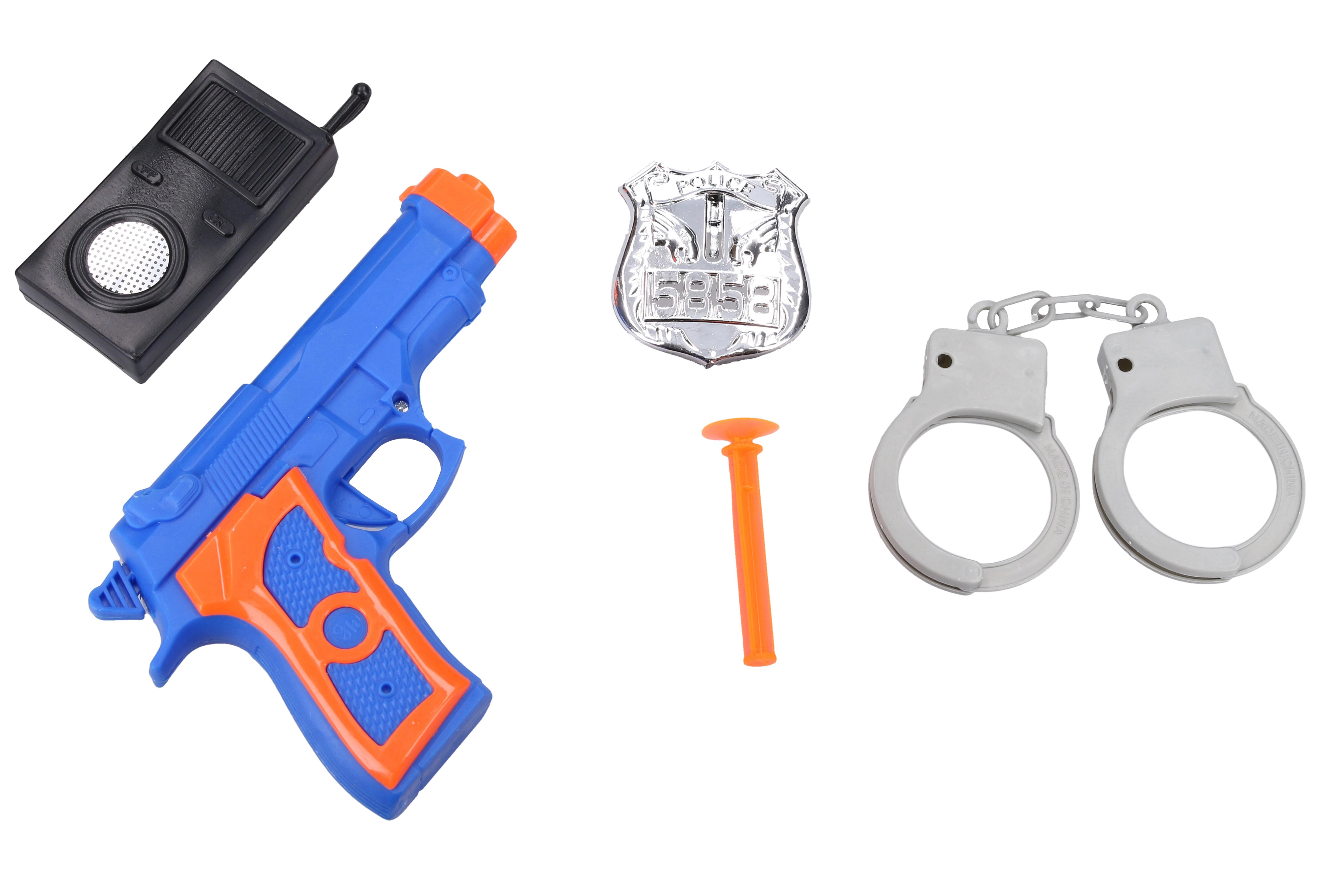 - пистолет, значка, белезници, уоки-токи, 3 вендузени стрели