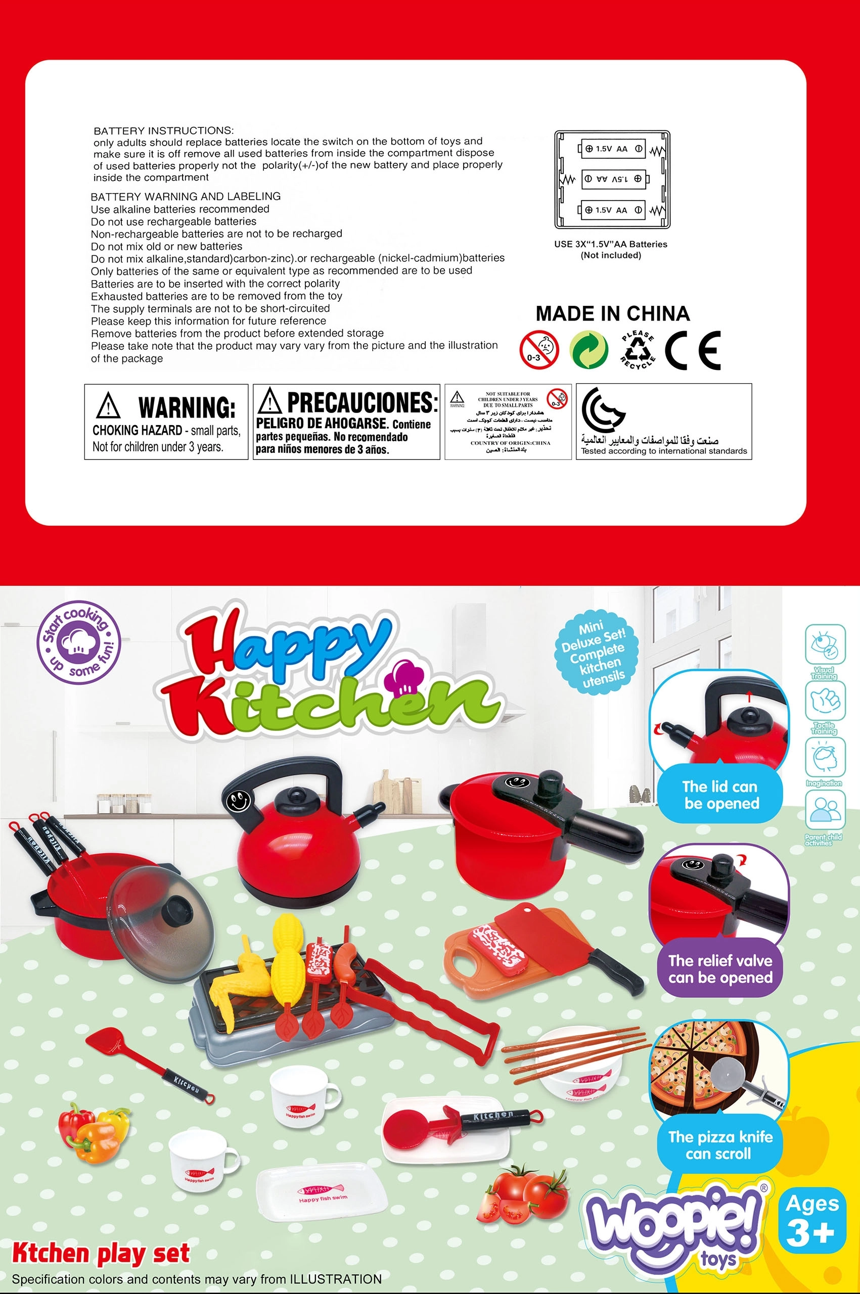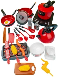 Забавният кухненски комплект от марката Woopie предлага на децата възможност да играят на готвене с реалистични аксесоари. Този пъстър комплект включва например тенджера, тиган и други необходими кухненски инструменти за малки готвачи.