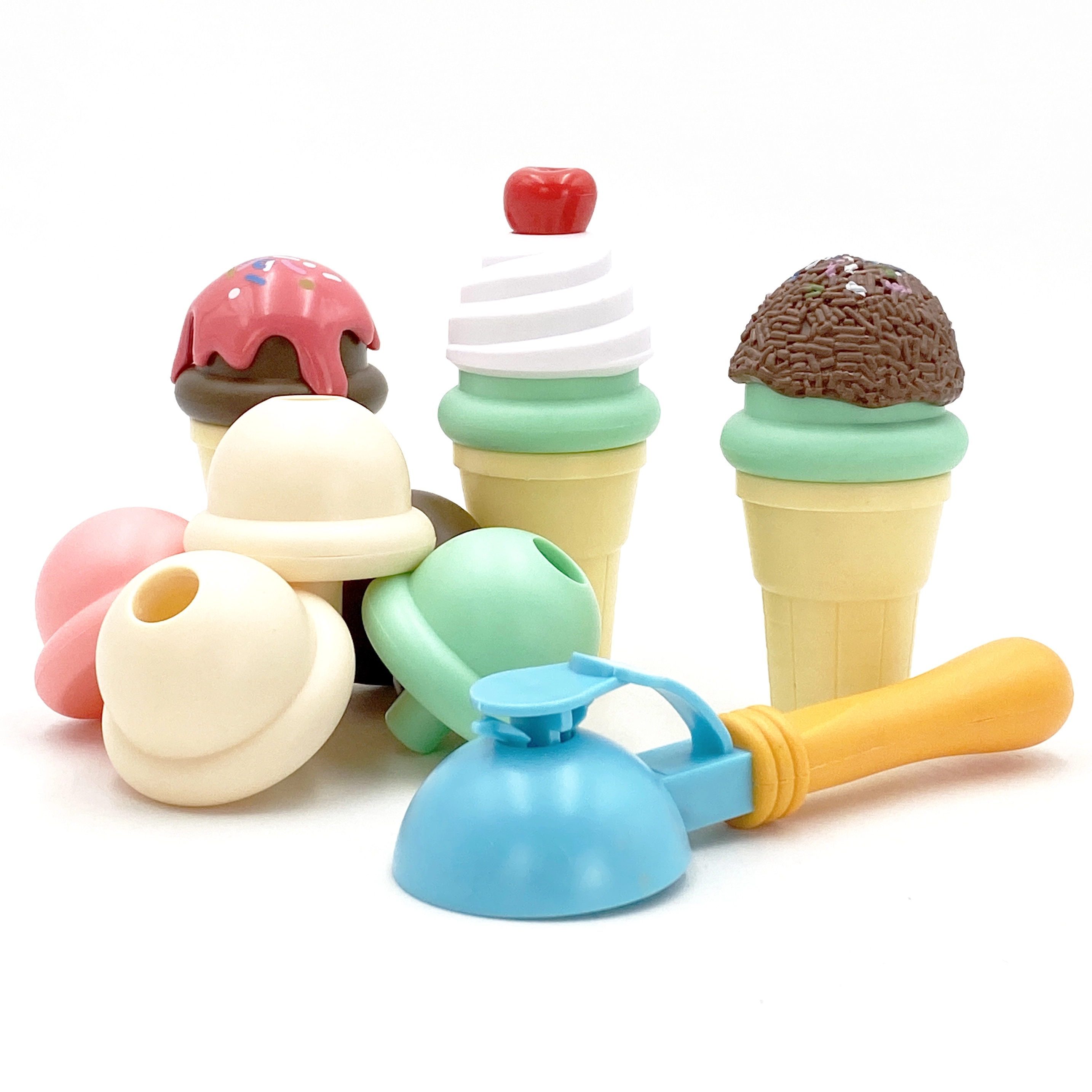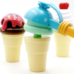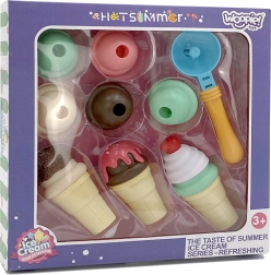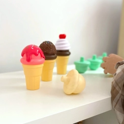 Комплектът сладоледджия развива детската фантазия и креативност, като детето може да влезе в ролята на сладкар и клиент. Включва всички части, необходими за създаване на перфектно сладоледено изживяване. Детето взема фунийка, загребва топка сладолед и я подрежда според собственото си творчество.
