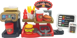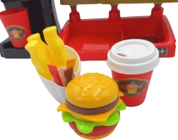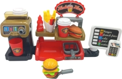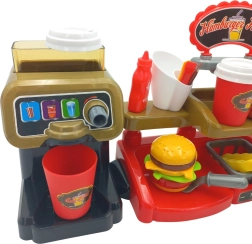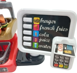 Този интерактивен комплект позволява на децата да изпитат автентично усещане за работа в заведение за бързо хранене, където могат не само да сервират храна, но и да използват каса със звукови ефекти. Децата ще оценят и възможността да наливат истинска вода от дозатора, което добавя реализъм.