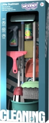 Комплектът за почистване Woopie представлява високo реалистична имитация на истински инструменти за почистване. Комплектът е перфектно адаптиран за детски ръчички и насърчава ролевите игри, което положително влияе върху развитието на отговорността и осъзнатостта за задълженията.