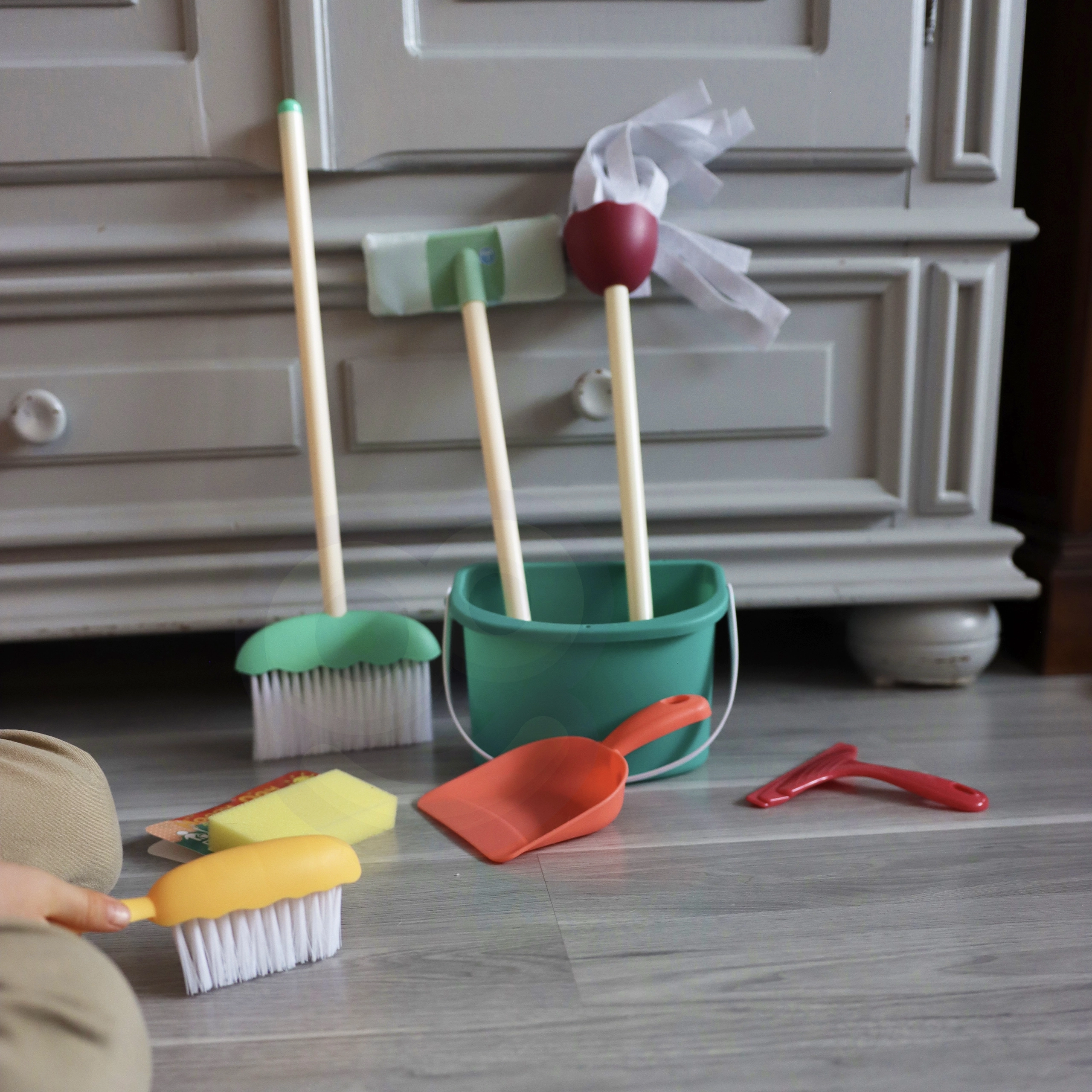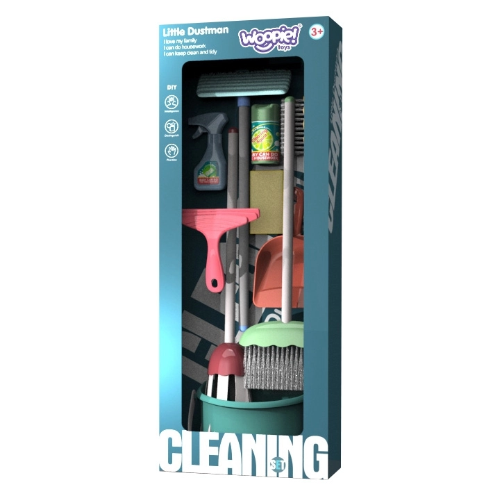 Комплектът за почистване Woopie е мечтата на всеки малък помощник! Децата обичат да имитират своите родители, а тази играчка учи на отговорност и развива осъзнатост за задълженията в ежедневието и сръчните умения.