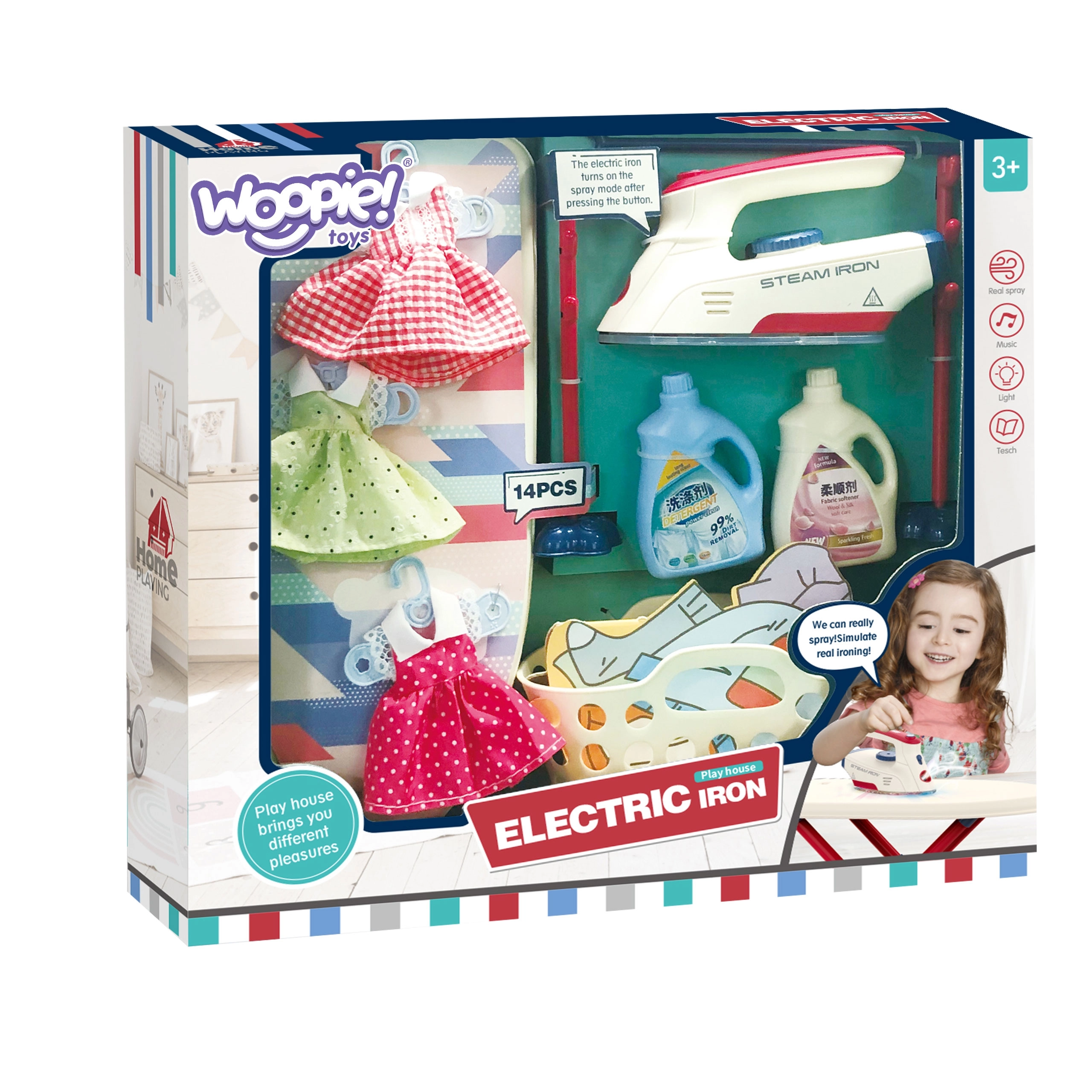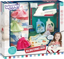 Комплект за гладене за деца от марката Woopie ще донесе на вашето дете много забавление при игра на малка домакиня. Съдържа ютия, дъска за гладене, кош за пране и вкл. закачалки и дрехи за кукли, всичко безопасно и съобразено с детските нужди.