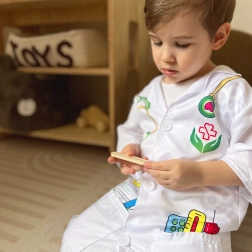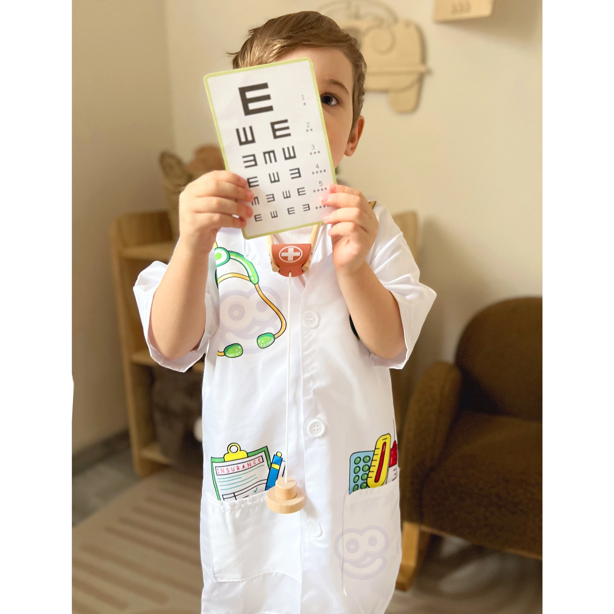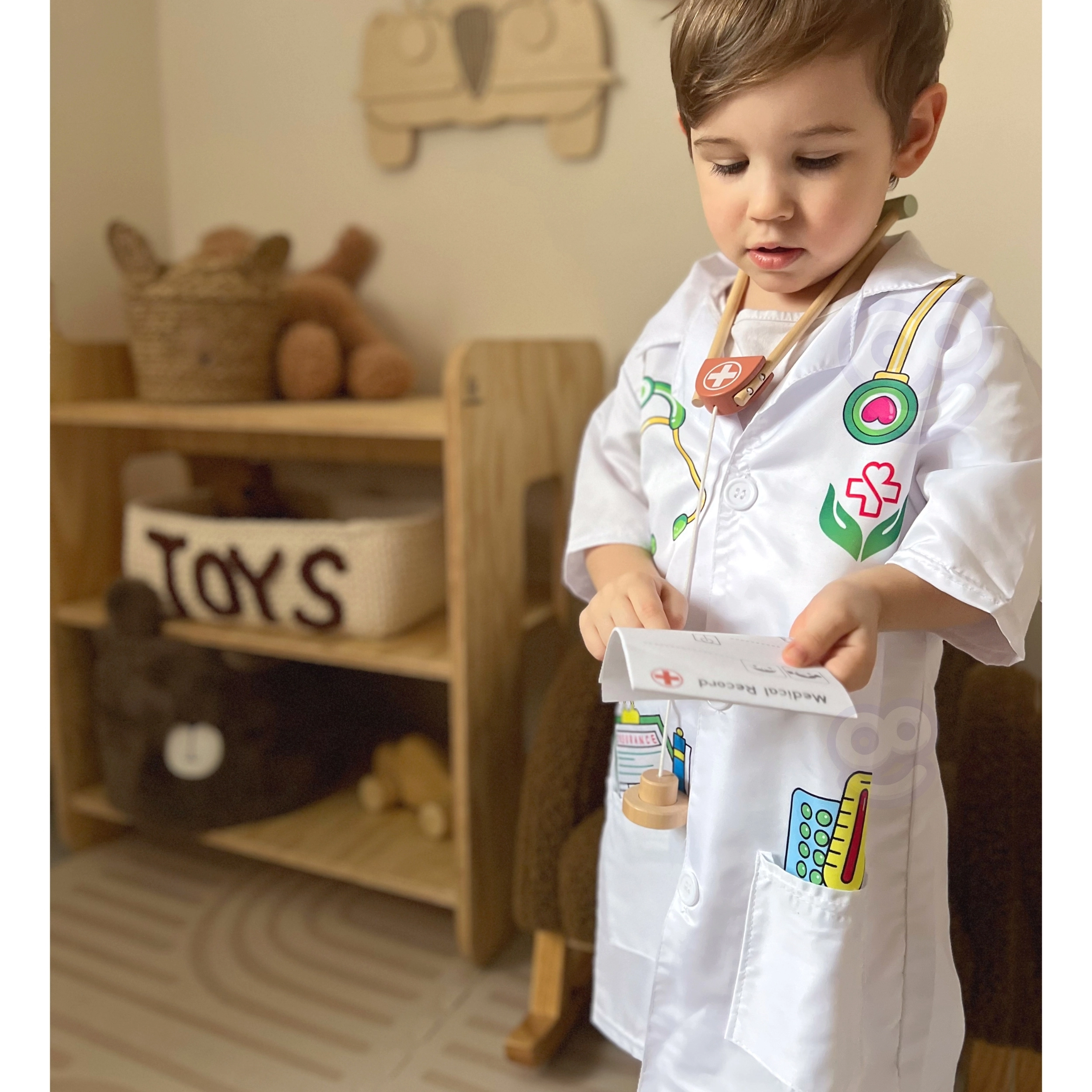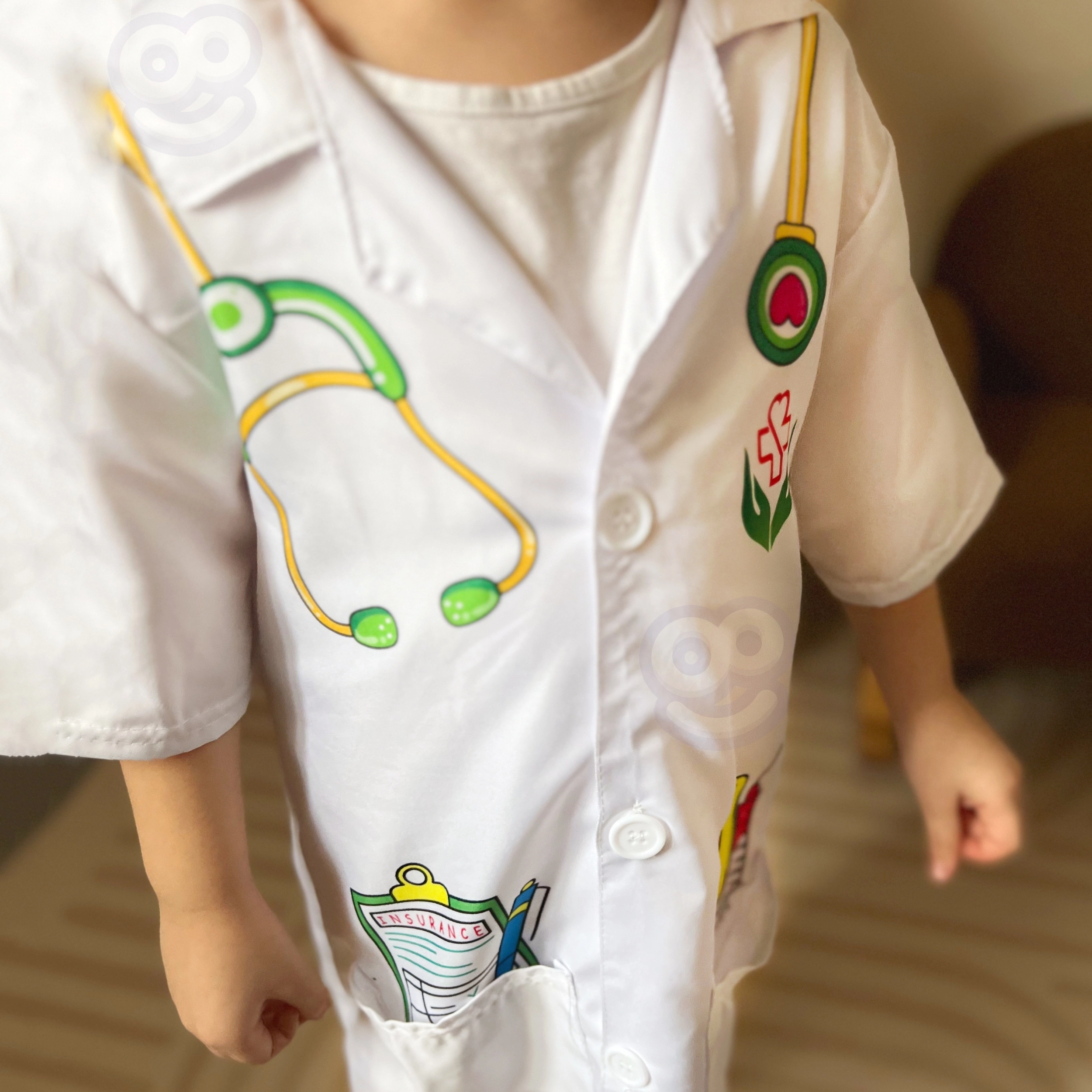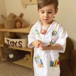 Костюмът перфектно имитира истинска лекарска престилка с всички детайли.