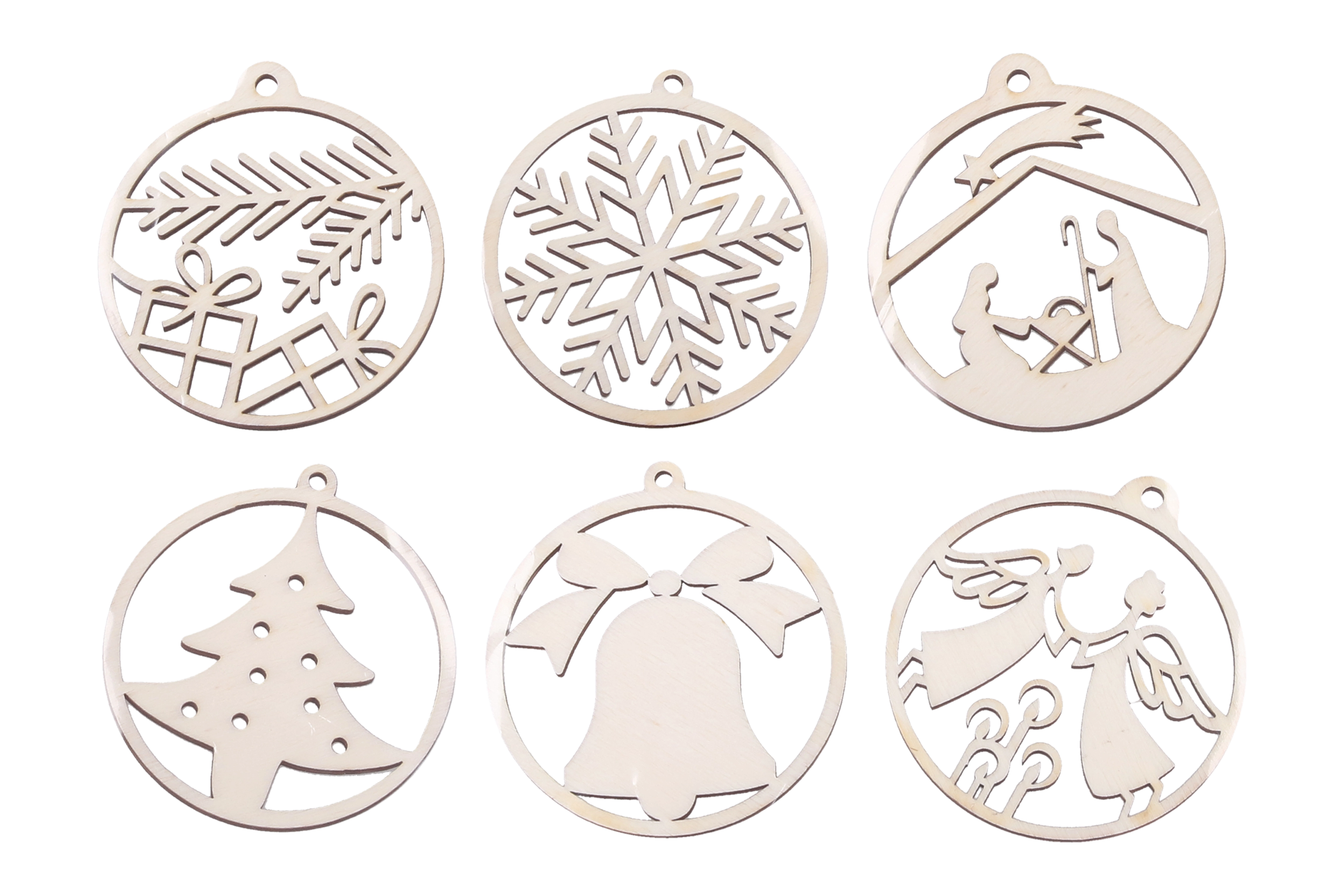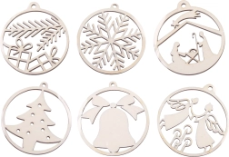 Елегантна дървена украса с диаметър 63 мм придава на вашия дом естествено очарование и автентична визия. Тя е лека, лесно се комбинира с други декорации и е идеална за коледни елхи, венци и креативни проекти. Предлага се в различни дизайни и е готова за допълнителни персонализации чрез рисуване или декориране.