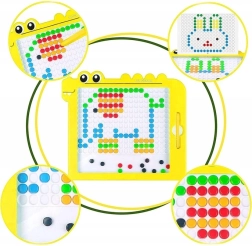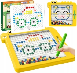 Тази креативна мозайка подпомага фината моторика, координационните способности, разпознаването на цветове и форми, както и концентрацията. Децата могат да творят по фантазия или да използват включените шаблони – общо 20 мотива за лесен старт и постепенно усъвършенстване.