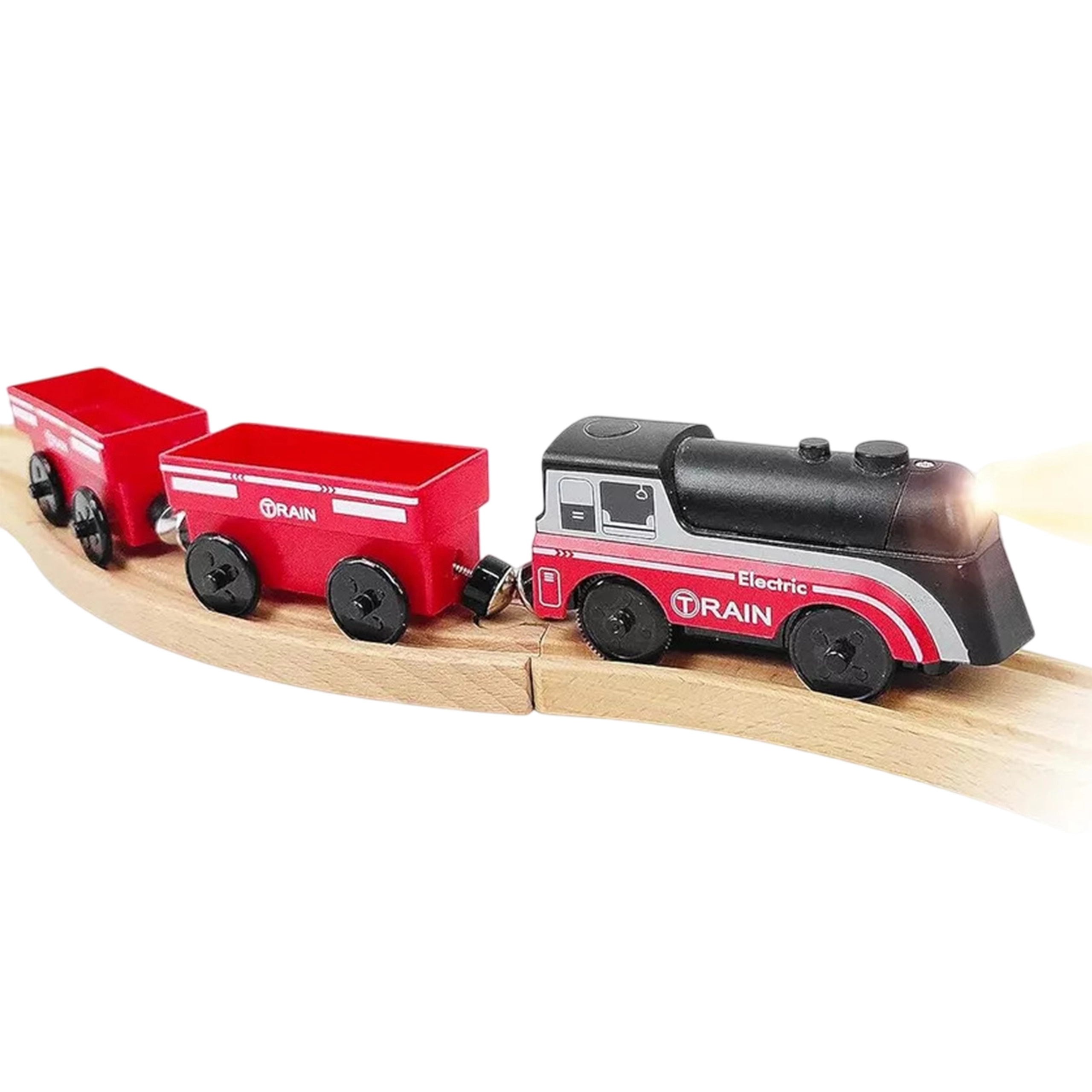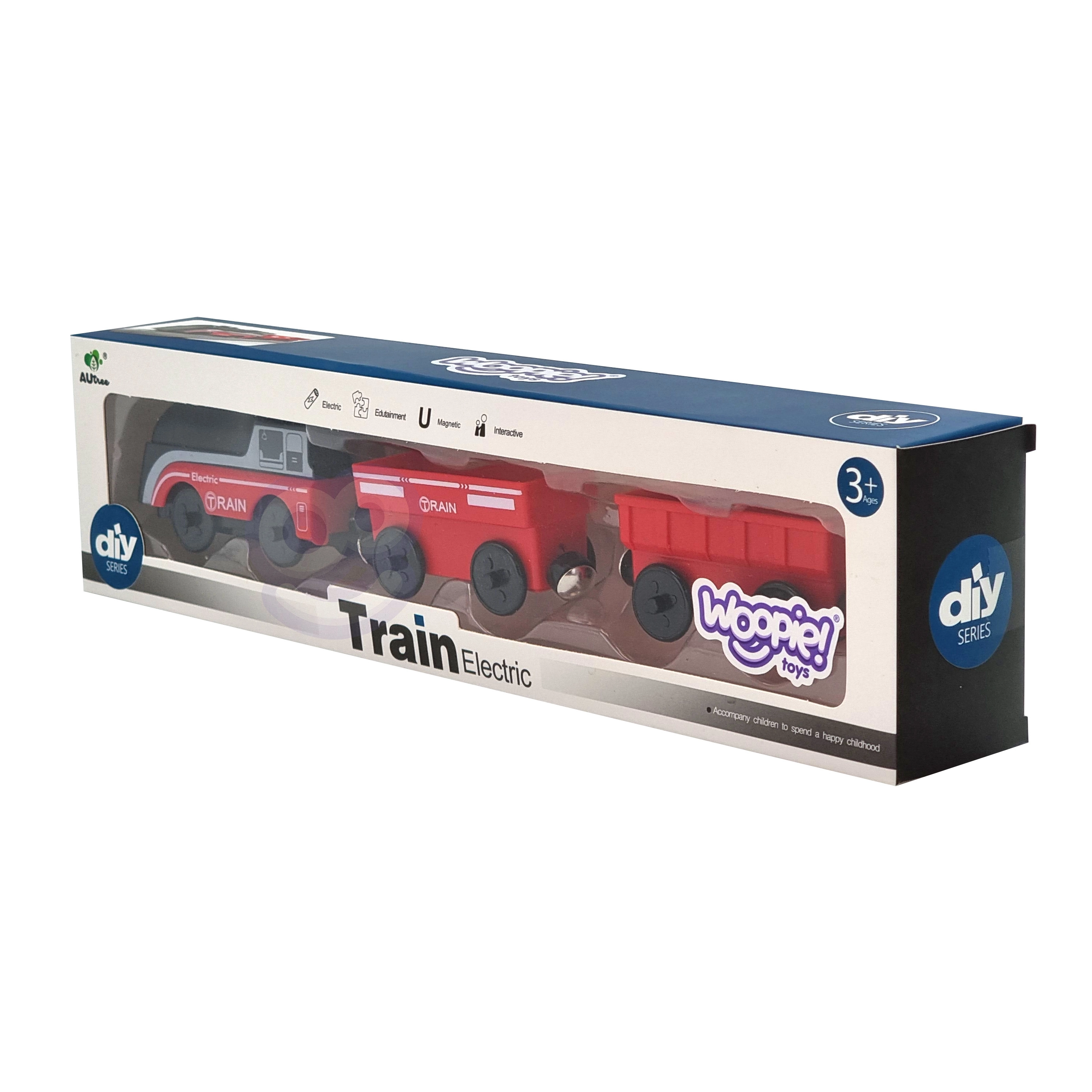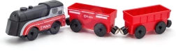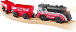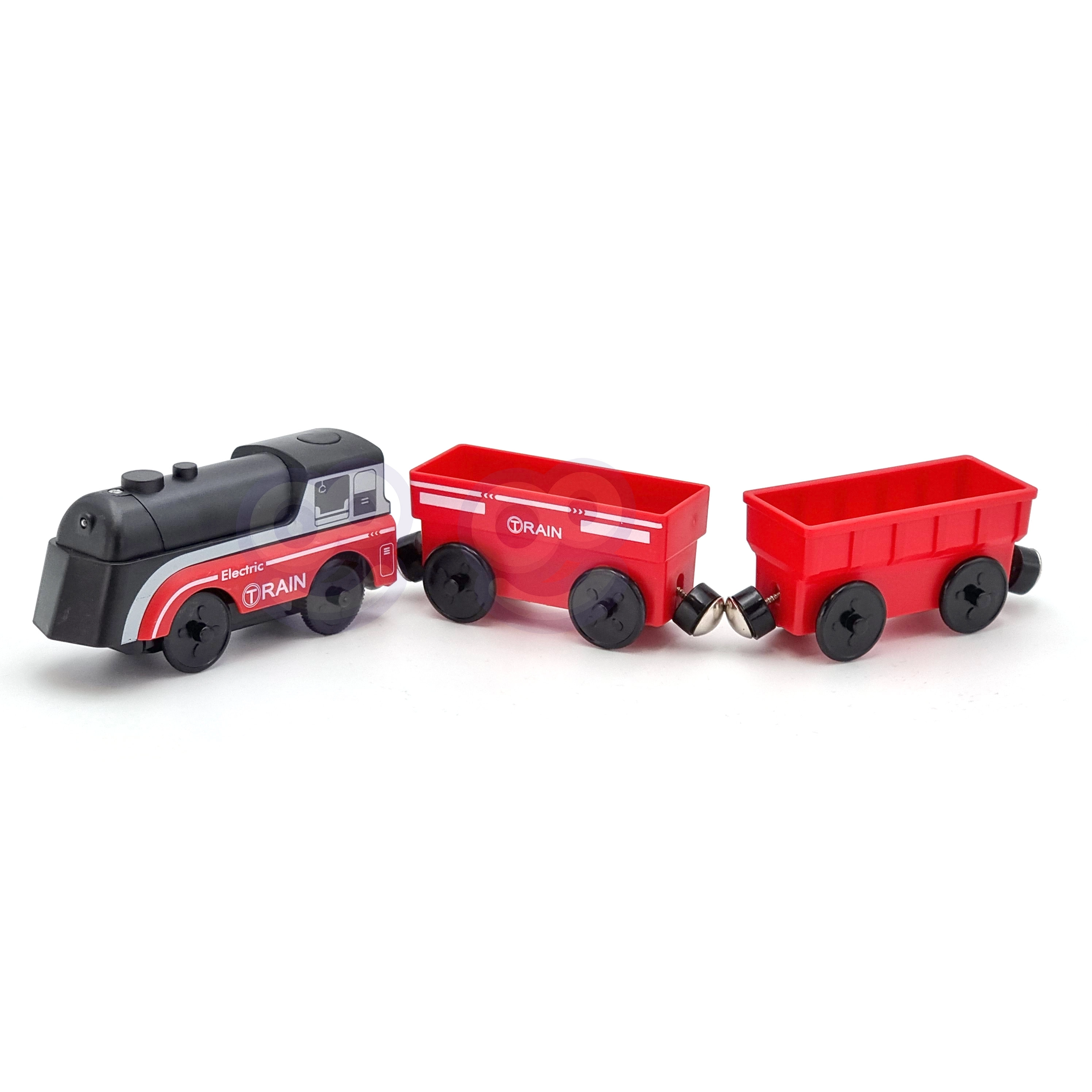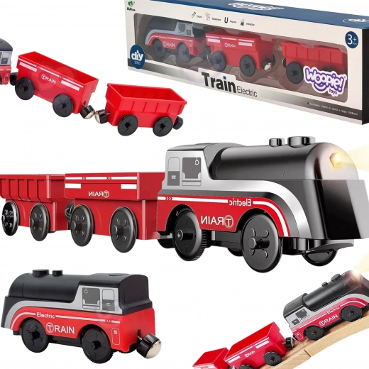 Комплектът използва магнитно свързване на вагоните за бърза и интуитивна сглобка. Локомотивът е захранван само от една AAA батерия (не е включена), по време на движение свети и се движи плавно като истински влак. Благодарение на стандартния габарит е съвместим с повечето дървени трасета (ширина на релсата прибл. 4 см, ширина на осчицата прибл. 2,5 см) – отлична добавка към сетове на IKEA, Brio и др.