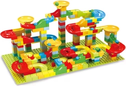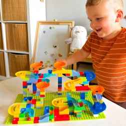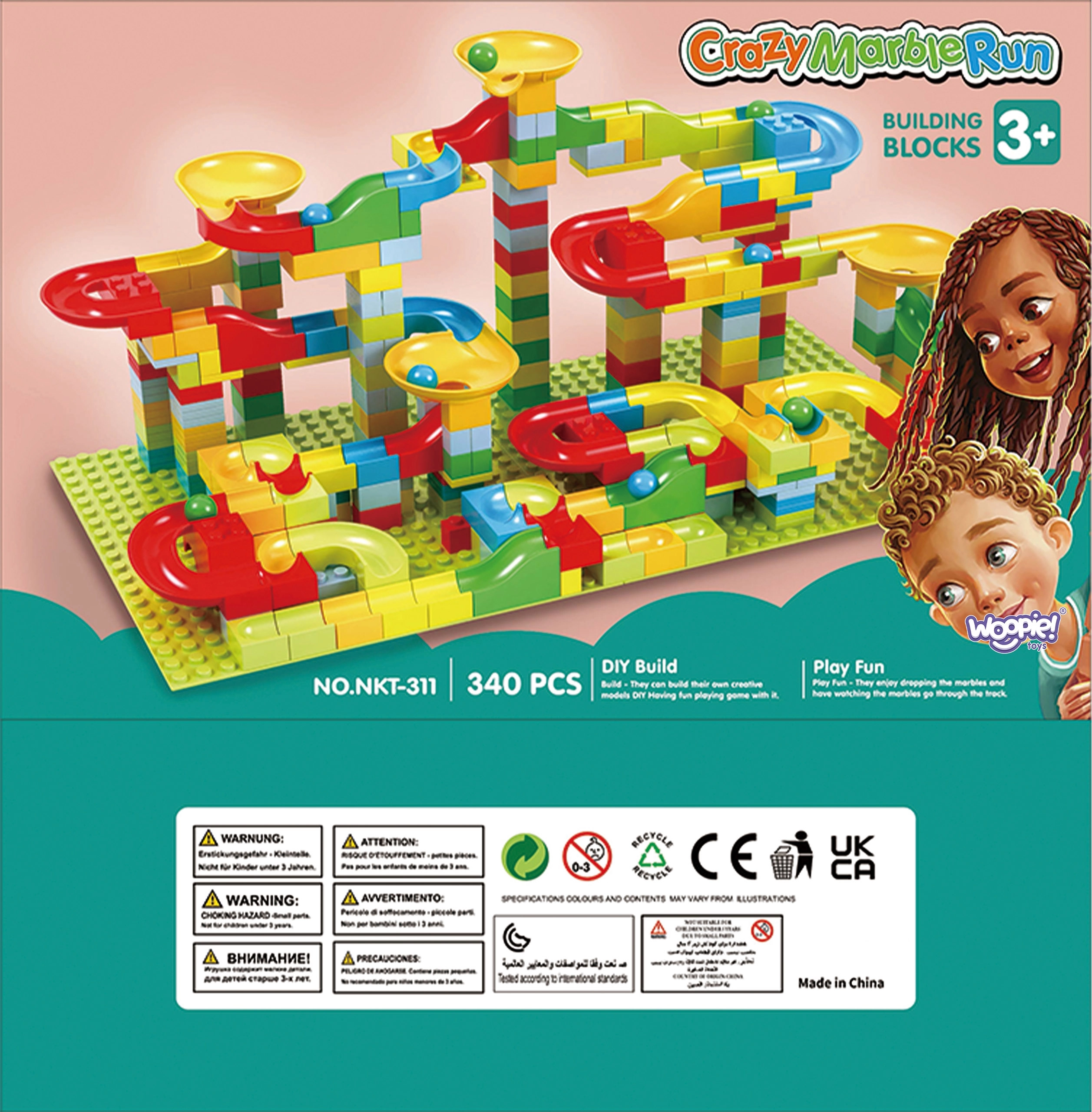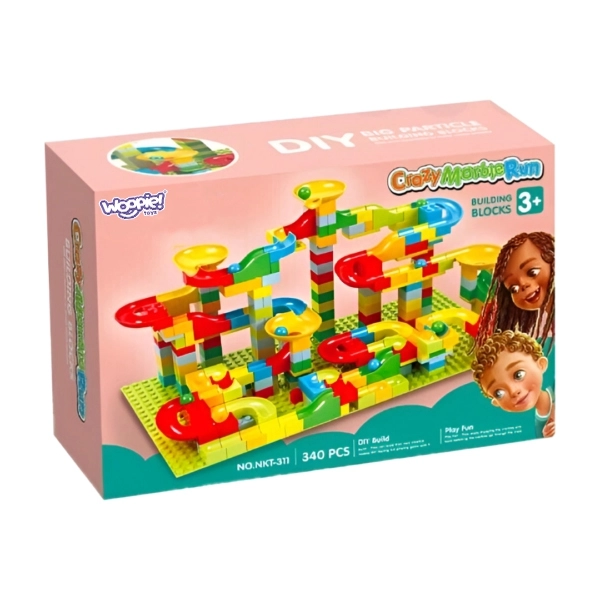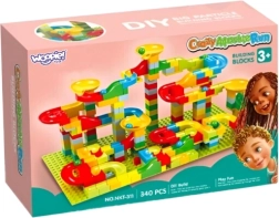 Този креативен строителен комплект WOOPIE превръща децата в истински архитекти. От различните елементи те изграждат уникални трасета, пълни със завои, спускания и препятствия, благодарение на които топчетата набират скорост и всяко спускане е различно. 340 части, включително 2 големи подиума 16 × 16 cm и практичен инструмент за разделяне на тухлички, осигуряват здрава конструкция и удобно сглобяване.