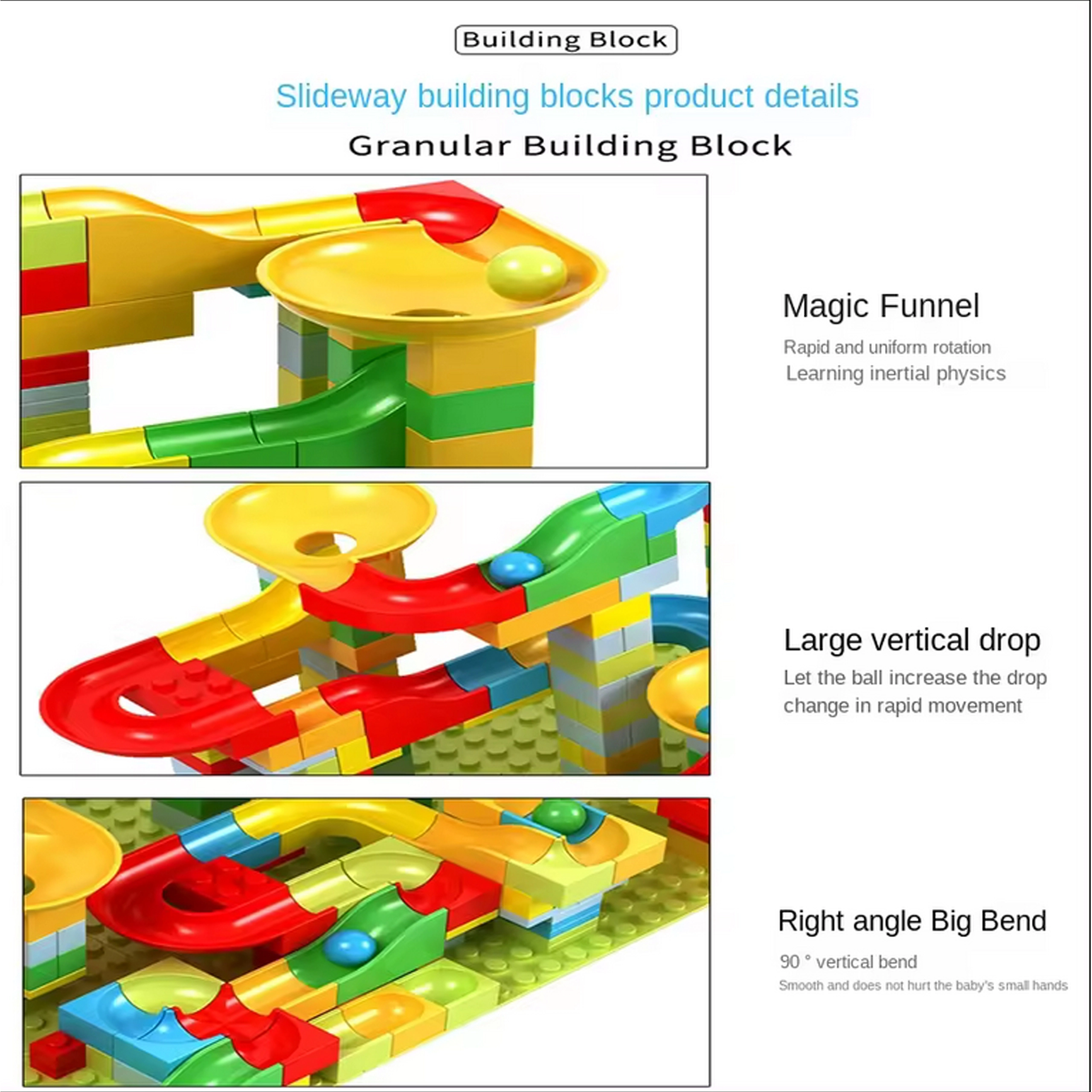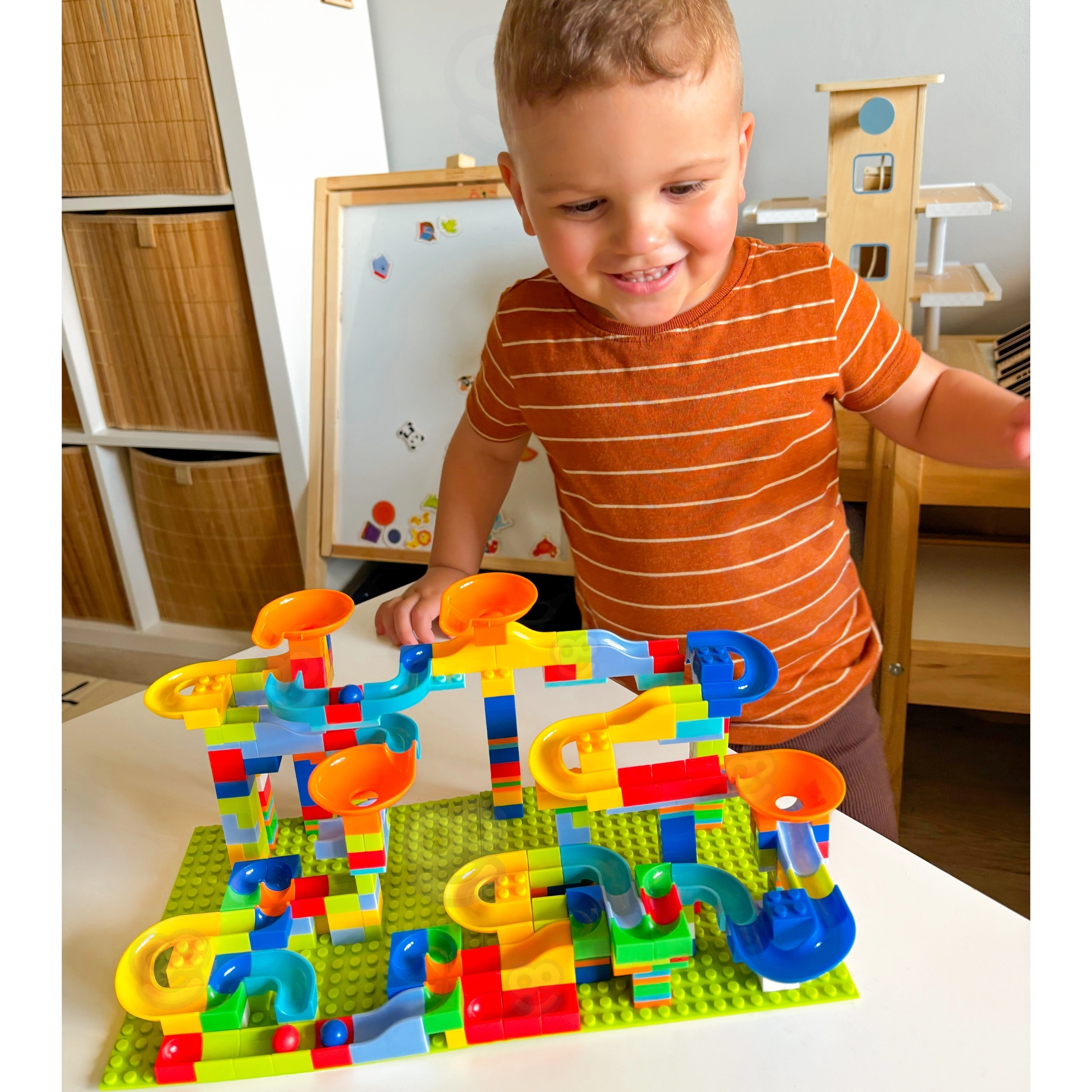 Комплектът развива координация око–ръка, моторни умения, креативност и концентрация. Благодарение на множеството варианти на подредба възникват трасета с различна трудност – децата ги ограничава само тяхното въображение. Включена е и илюстрирана инструкция за вдъхновение при първото строене.