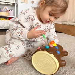 Магнитната игра „Хвани червейчето“ предлага на децата от 3 години нагоре игрив начин за трениране на умения. Задачата е да се намерят цветните червейчета в пънчето и с помощта на магнитни дървени човки („кълвачи“) да се пренесат до гладното пиленце. Простите правила въвличат и родители, и братя и сестри, за да се насладите на качествено време заедно.
