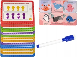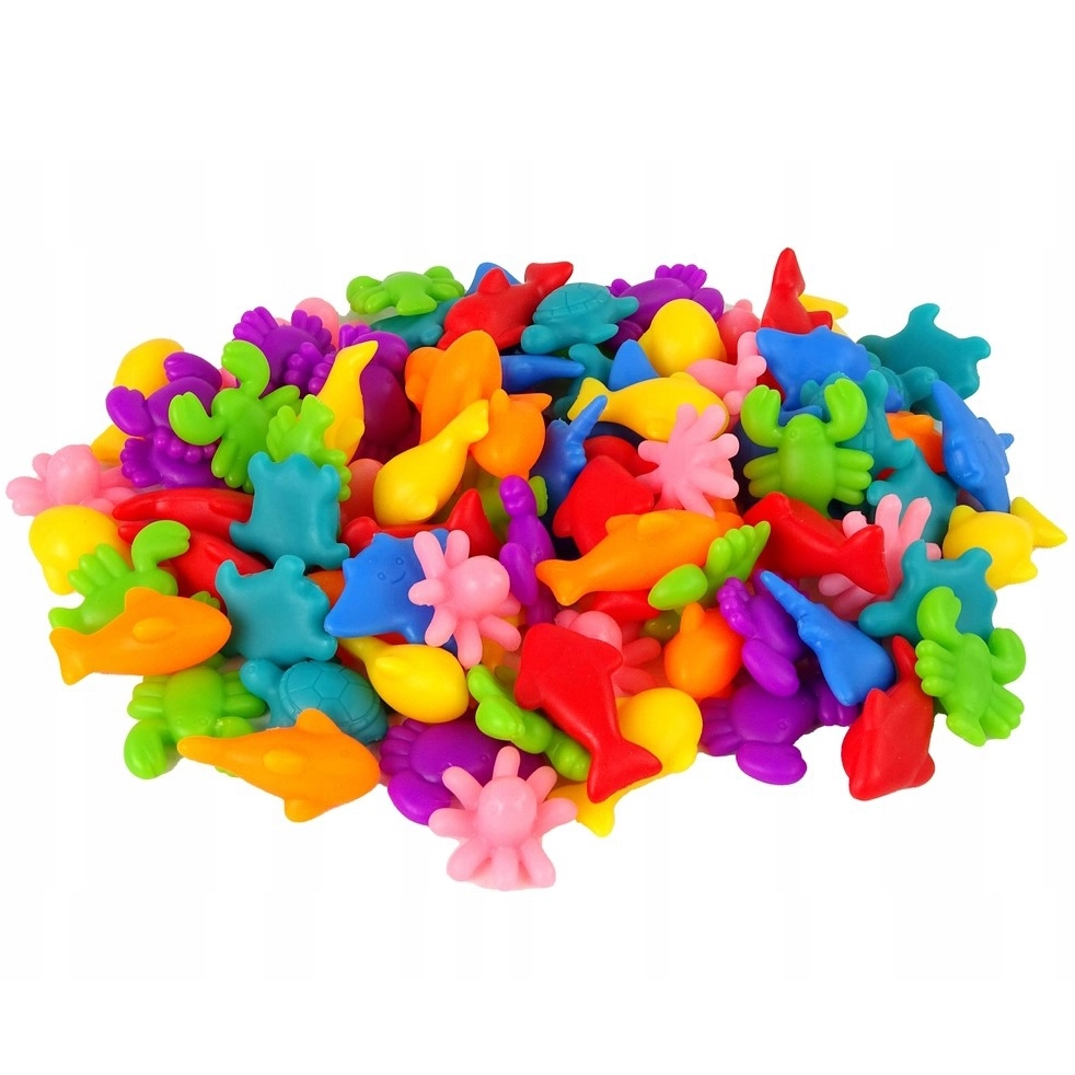 В комплекта има общо 111 части, включително 16 задачни карти, с чиято помощ децата се учат да подреждат и броят. Пъстроцветните морски фигурки (напр. червени делфини, жълти рибки, лилави раци) дават възможност за включване на фантазията и увеличават взаимодействието с детето. Всичко това в безопасна среда благодарение на гумените фигурки.