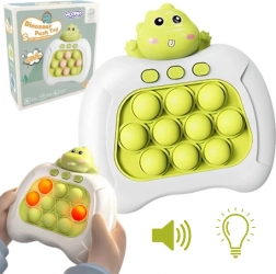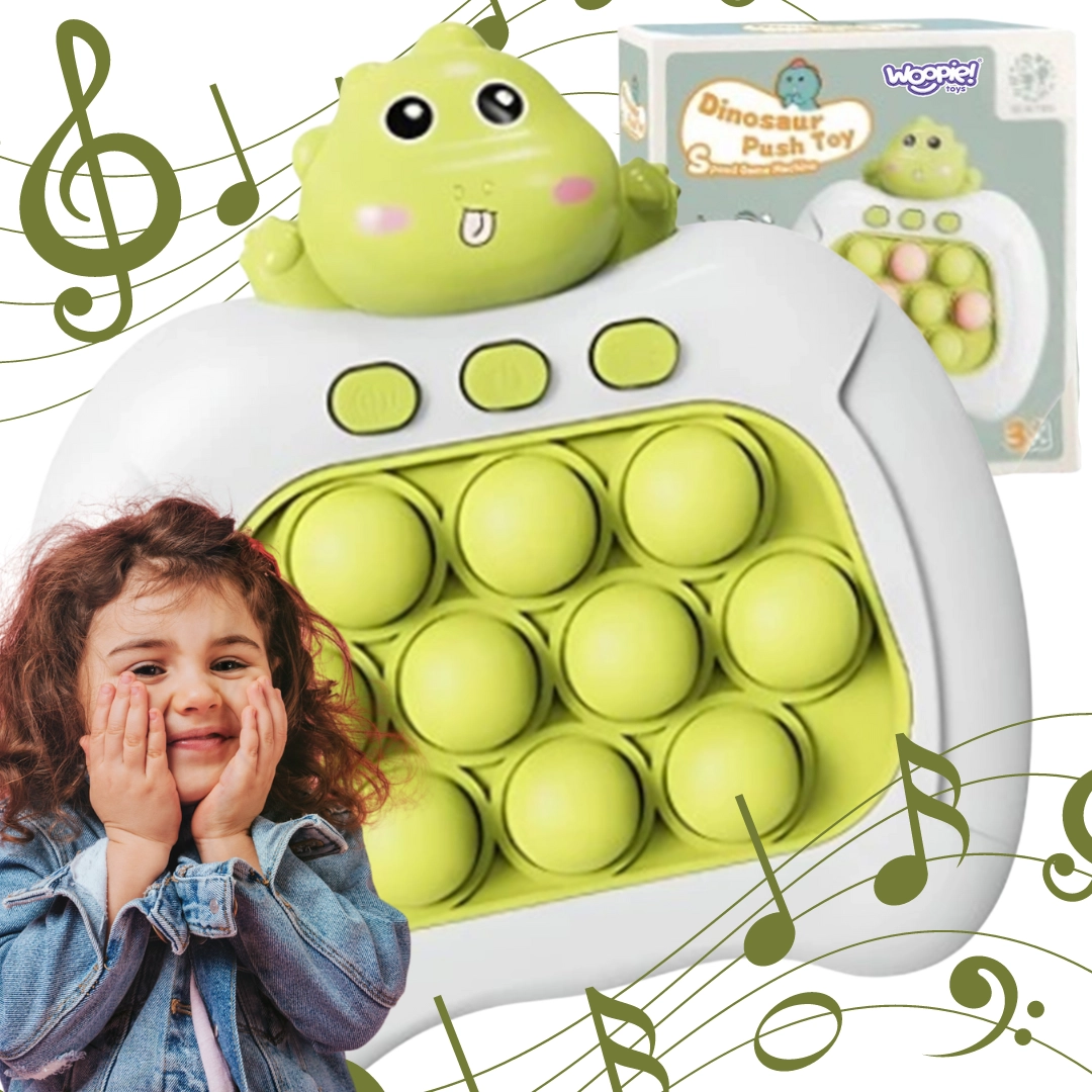 Електронната антистрес игра POP IT – динозавър е идеалният спътник както за път, така и у дома. Благодарение на компактните размери лесно се побира в раницата. Забавните светлинни ефекти и радостните звуци мотивират към игра и удължават вниманието на децата.