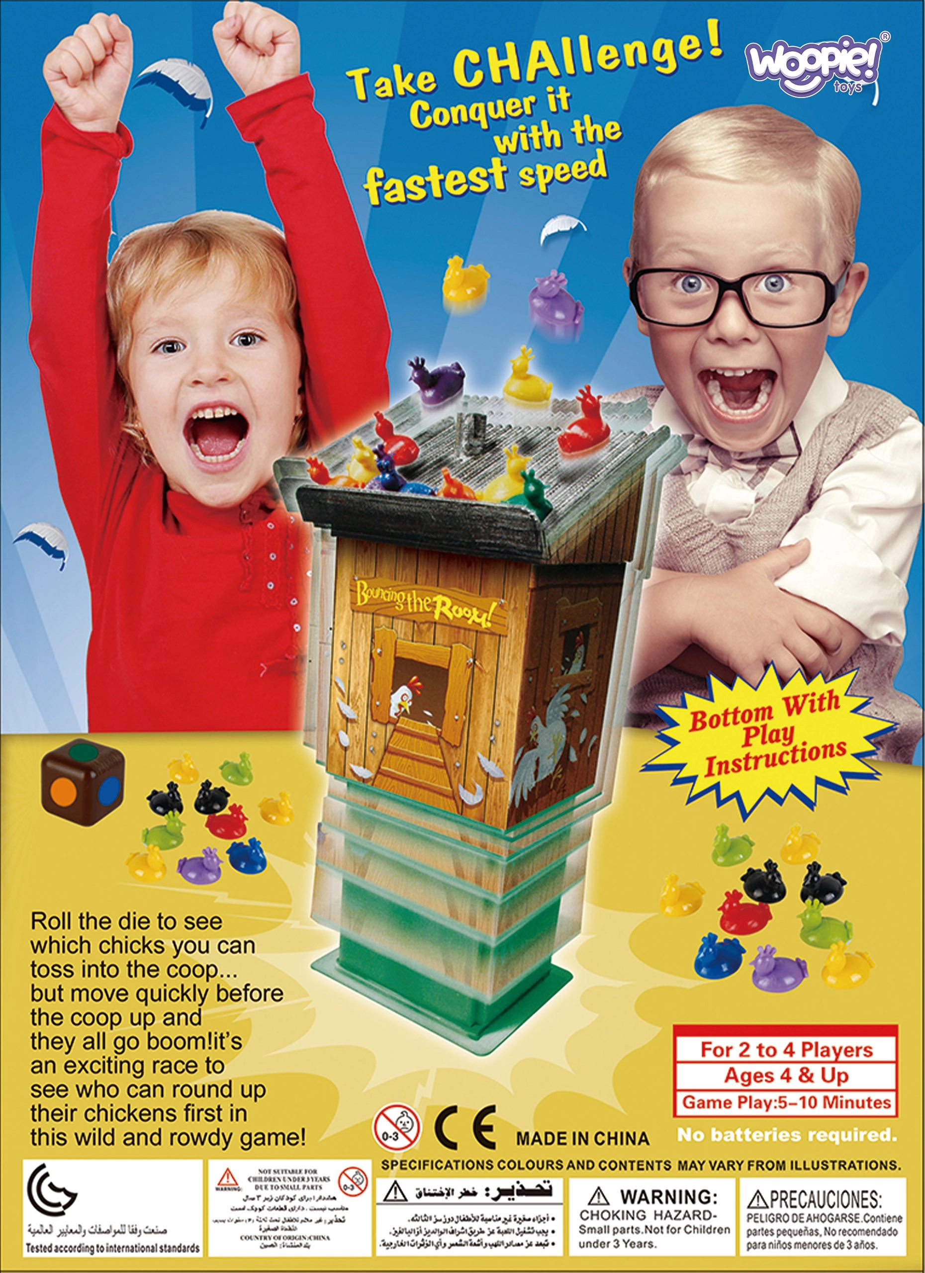 С натискане на покрива на курника играчите задействат механизъм за движение, който предизвиква неочаквани „взривове“, като по този начин увеличава напрежението и динамиката в играта.