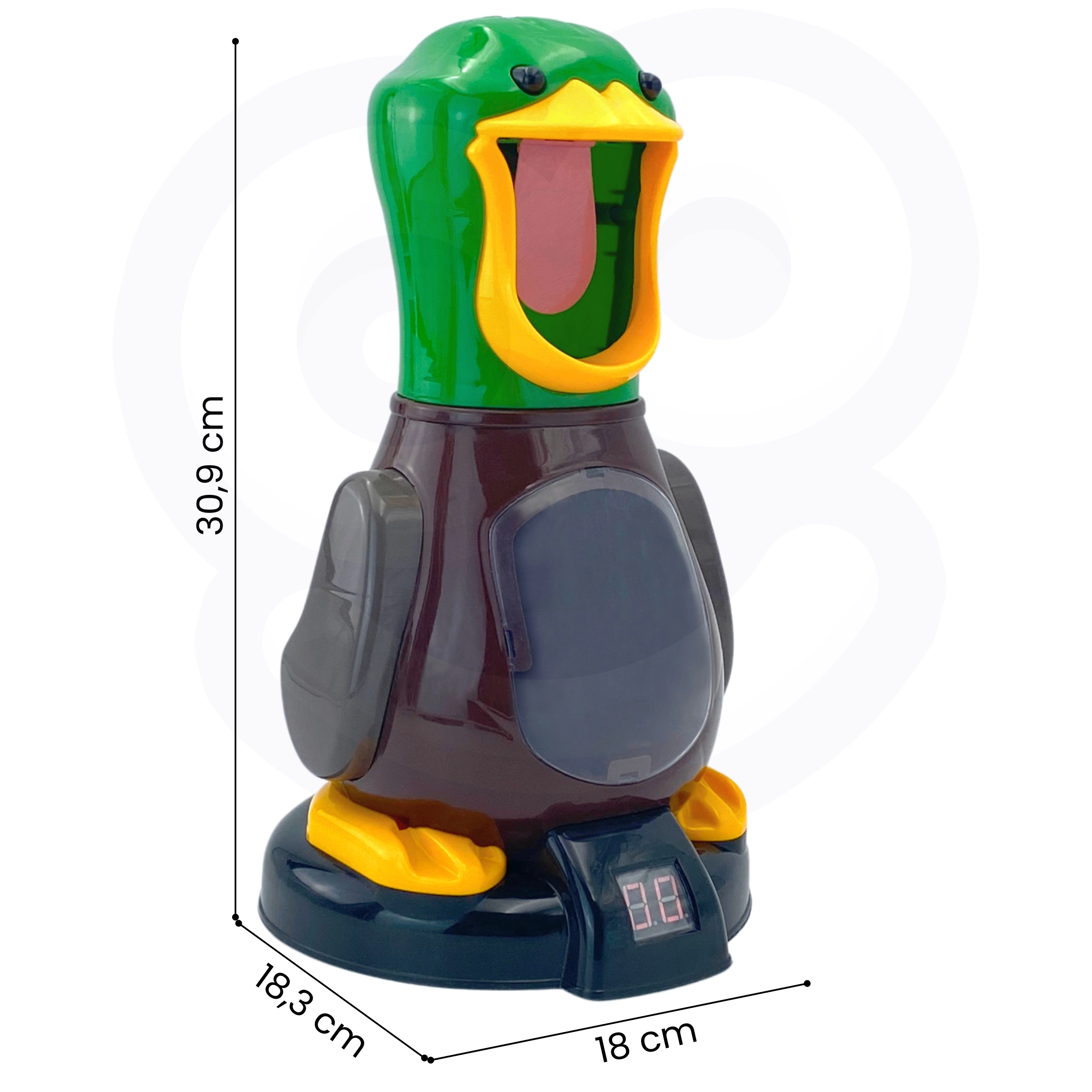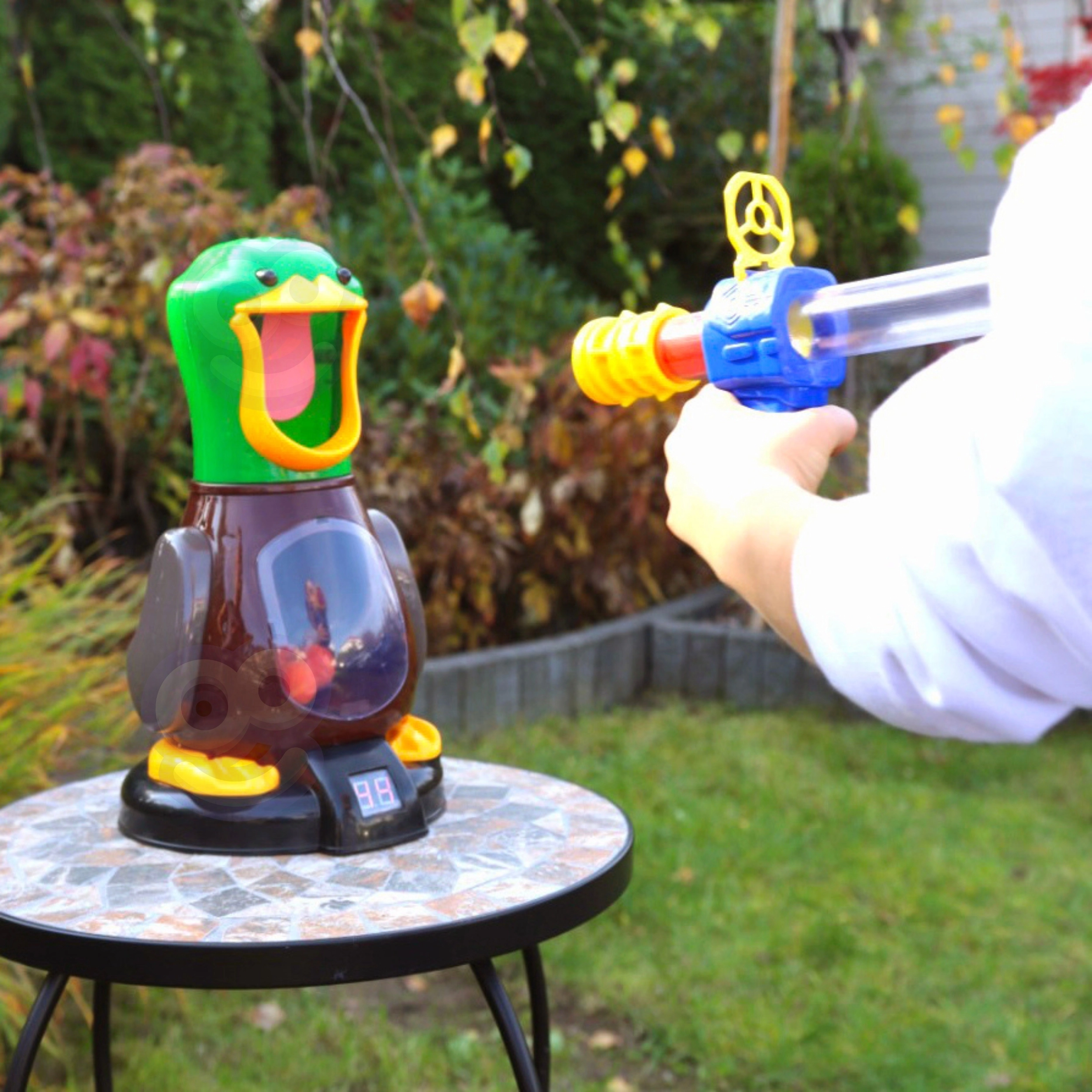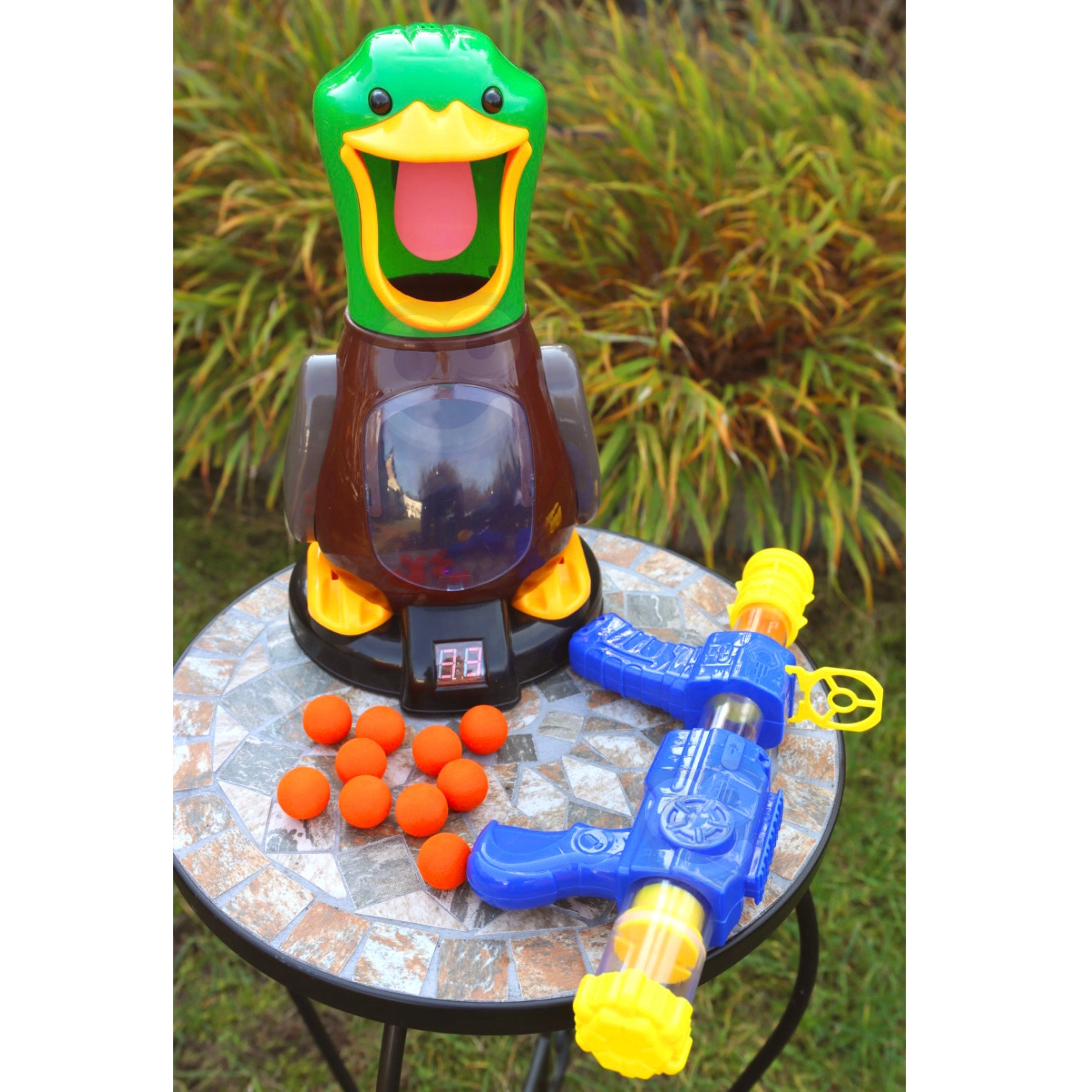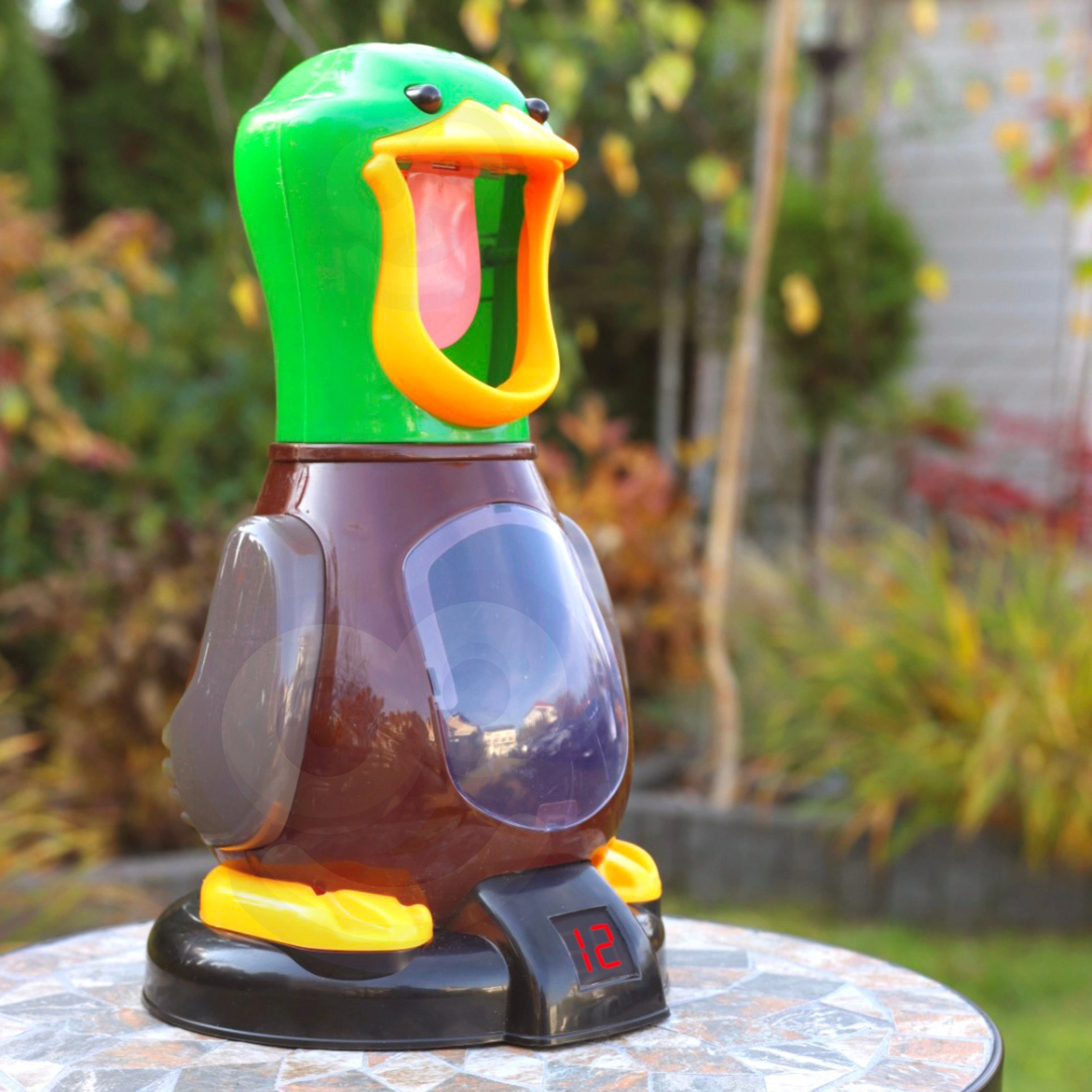 Попаденията се отчитат автоматично и резултатът се вижда ясно на цифровия дисплей в основата на патицата – идеално за честни състезания.
