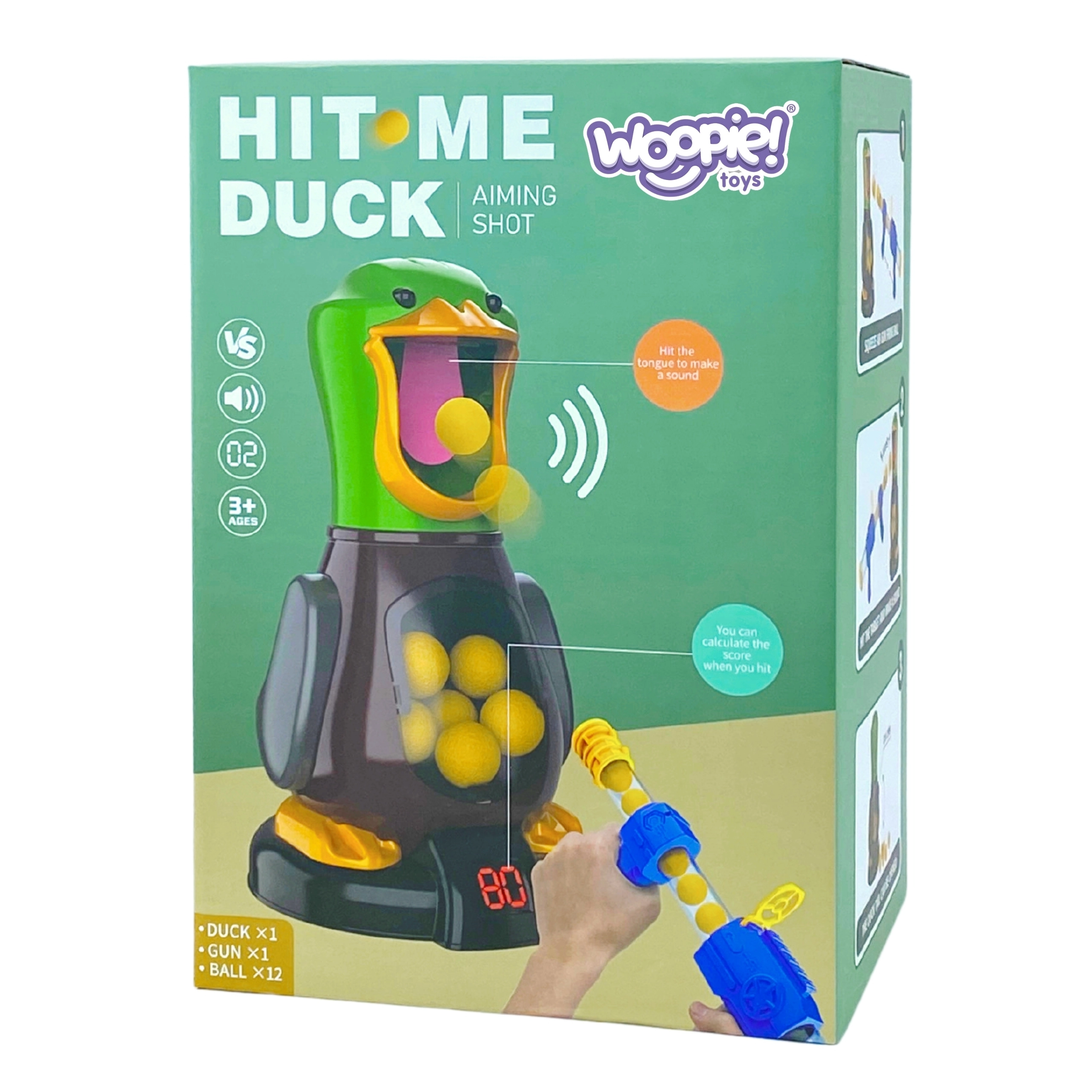 Гладна патица WOOPIE е динамична настолна игра, която превръща всяко следобед в забавно състезание. Целта е да улучите езика на патицата и да се прицелите в нейния отворен клюн. Вграденият цифров дисплей автоматично отчита попаденията и показва резултата, така че лесно да обявите победителя.