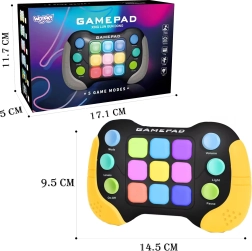 Забавен и интерактивен геймпад от марката WOOPIE комбинира популярните POP-IT бутони с електронна игра. Предлага 5 игрови режима, настройваща се трудност, светлинни LED ефекти и регулиране на звука. Подпомага концентрацията, координацията и бързите реакции, което го прави отличен избор за деца от 3 години.