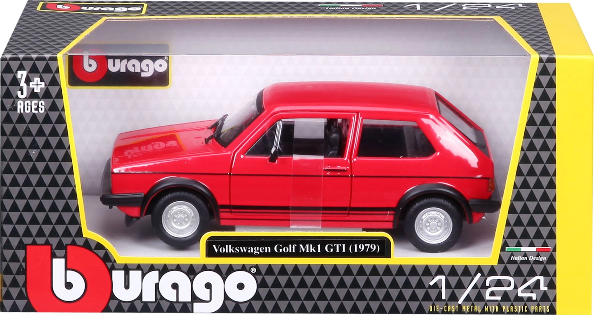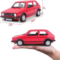 Допълнете своята колекция Bburago с невероятния метален модел автомобил Volkswagen Golf MK1 GTI в мащаб 1:24 в червен цвят.