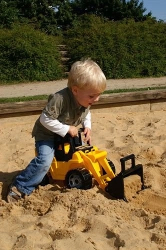 Детски багер Lena в черно-жълто изпълнение от висококачествен пластмасов материал, който отговаря на европейските стандарти. Оборудван с подвижно рамо с товарна кофа, което осигурява страхотно забавление за децата.