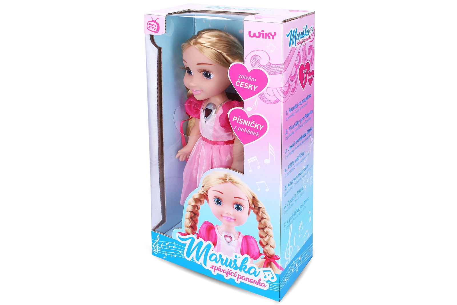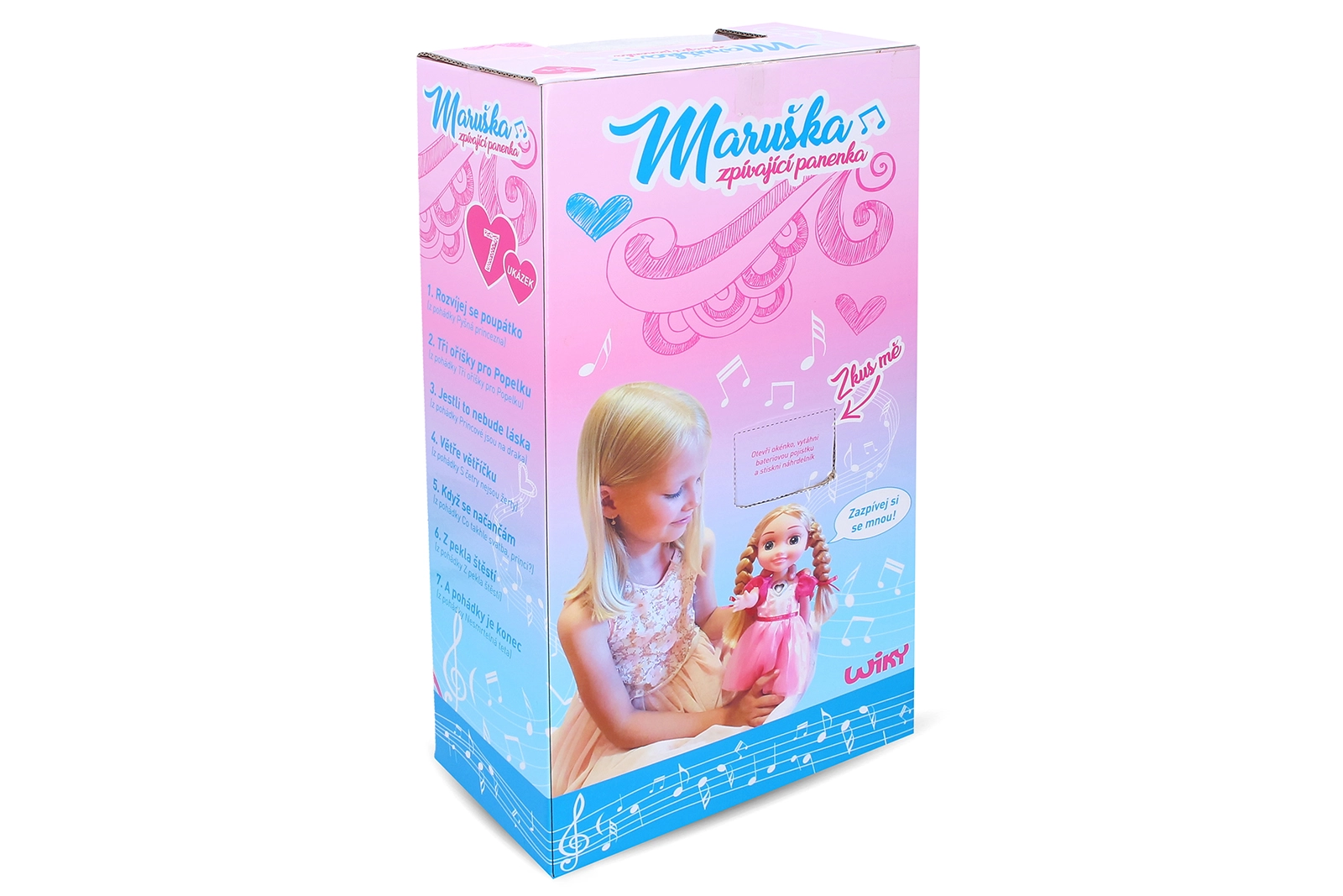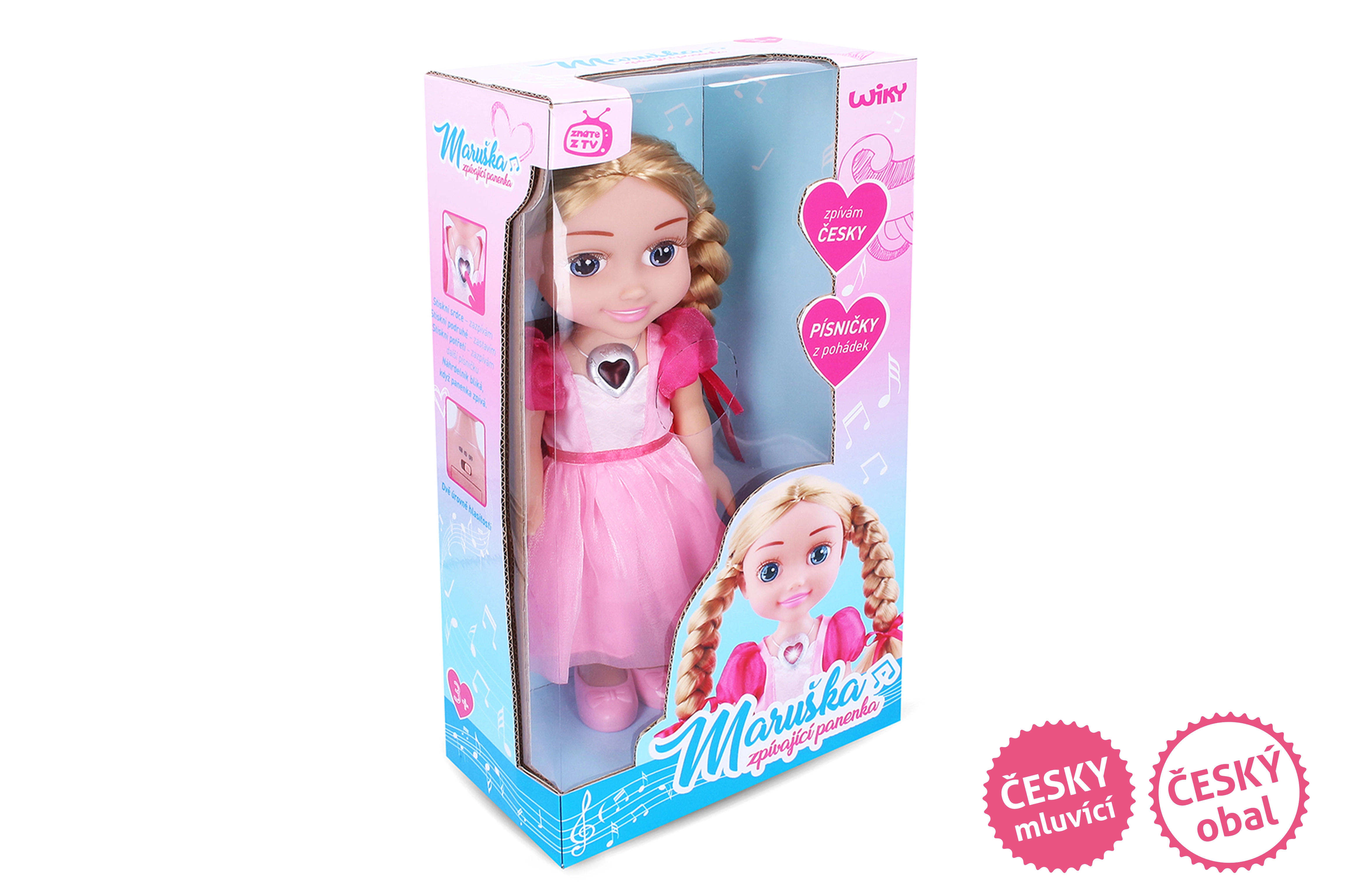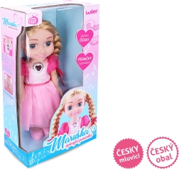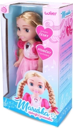 Пеещата кукла Марушка предлага вълшебно изживяване с откъси от любими приказки. Потопете се в приказния свят, където доброто винаги побеждава. Нейното колие мига по време на пеене и можете да избирате между две нива на сила на звука за идеално слушане.