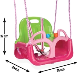 Розовата люлка WOOPIE 3 в 1 е проектирана за деца от 12 месеца и се адаптира към тяхната възраст и умения. Лесно сваляща се облегалка и предна преграда позволяват бърза промяна от безопасно бебешко сядане към по-голяма детска седалка. Издръжливите, гладки пластмаси са приятни на допир, лесни за почистване и устойчиви на външни условия.