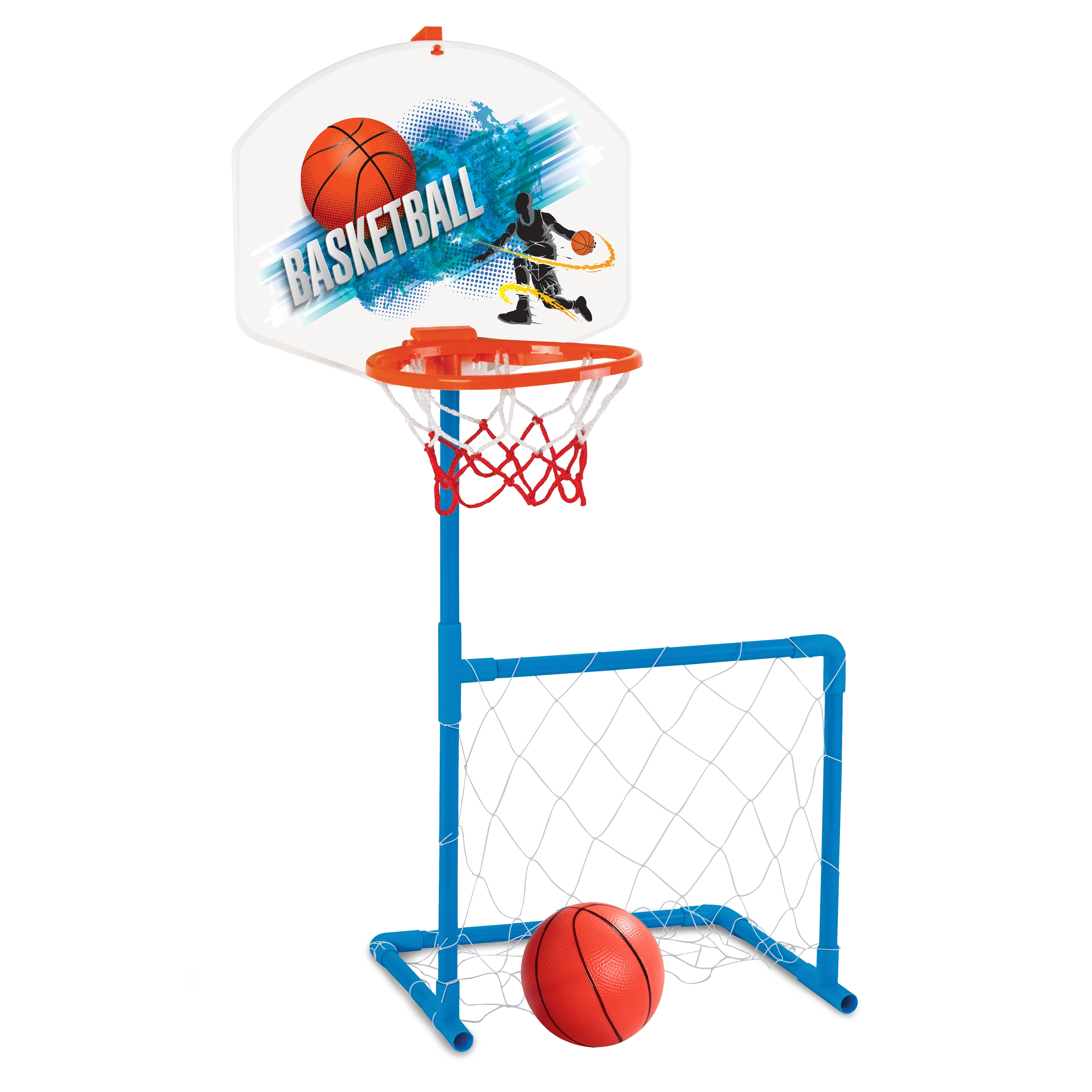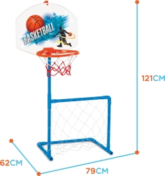 Комбинацията от баскетболен кош и футболна врата поддържа децата активни и ги предпазва от скука.
